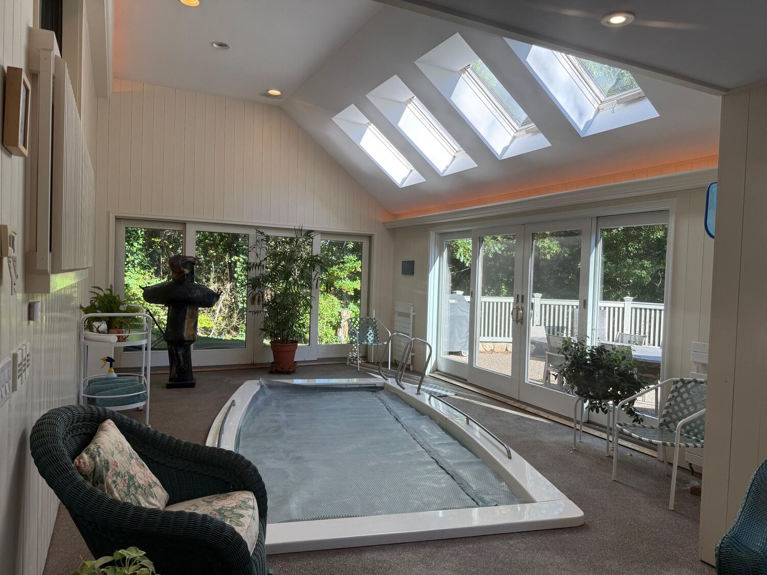 Exquisite Contemporary, tucked in on 1.91 gorgeous acres offering privacy! A timeless retreat providing easy & comfortable living spaces for kick back weekend gatherings & entertaining. There is room for all within 4 bedrooms, 4 baths, a living room with a wood burning fireplace, an indoor therapeutic pool for conditioning & staying fit, a terrace with a retractable awning to keep the sun or rain at bay no matter what the weather for alfresco dining, a classic handrail ramp for easy access & entrance to house amongst lovely gardens where form & function coexist with nature. Easy commute to Boston, nearby Sandy Neck beaches & all the best Cape Cod has to offer! Park the car & unpack your bags, you've found your Cape retreat! Buyers & Buyer's Agents to confirm all information contained within.