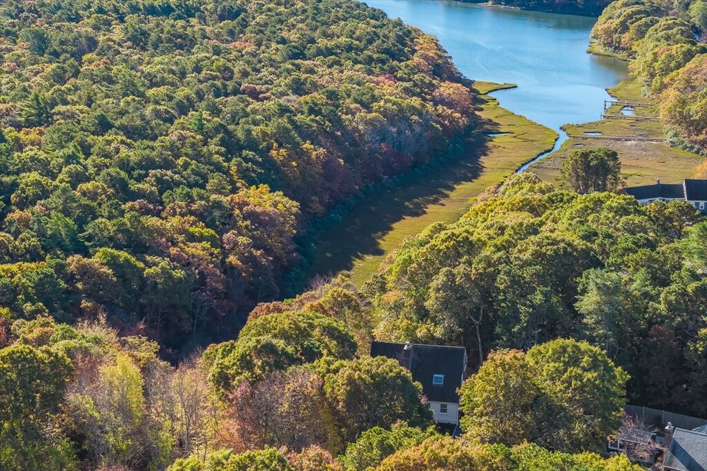 Tucked among mature trees and vibrant landscaping, this classic updated Cape-style home offers timeless New England charm with all the comforts of modern living. Enjoy a 1st floor Primary Bedroom Suite, Air-Conditioning, 1st Floor laundry, hardwood floors and a finished basement. Inside, you'll find a warm and inviting layout complete with wood burning fireplace. 2nd floor loft and lower level wood stove . The flexible floor plan offers comfortable living spaces, a well designed kitchen, and thoughtfully curated bedrooms that provide privacy and versatility for family or guests. Step outside to enjoy the tranquil setting—lush lawn, mature plantings, and a picturesque outbuilding that adds character and functional storage. The private backyard next to tidal marsh that leads to Israel Cove, offers a patio area ideal for outdoor dining or quiet relaxation beneath the trees. Located in one of Falmouth's most desirable areas.