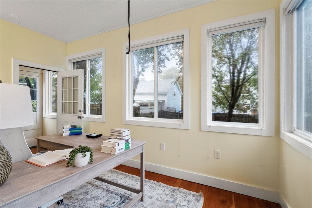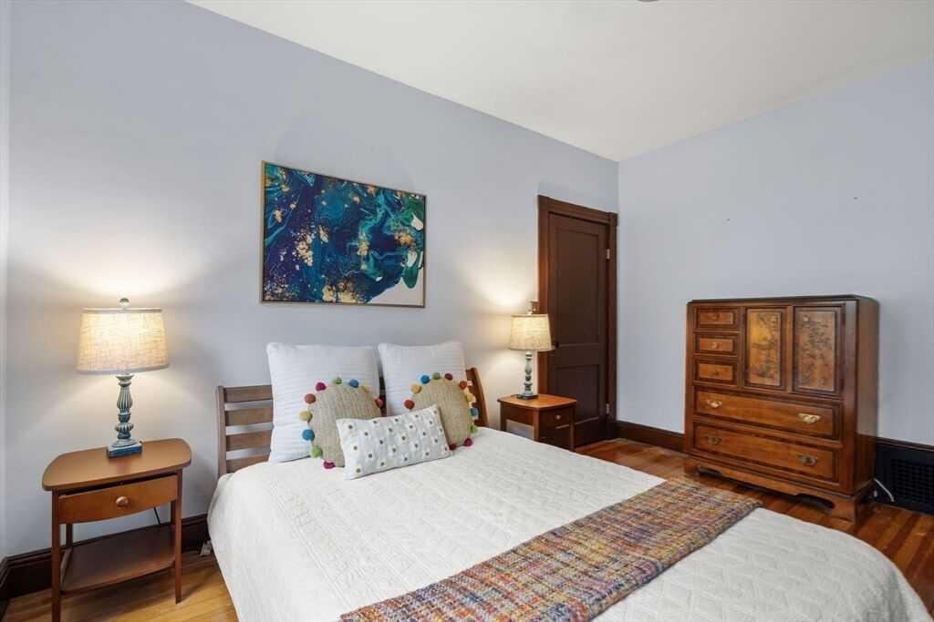 Located on a quiet, tree-lined street in Belmont's popular Waverly Sq neighborhood, this bright 2-3 bedroom, 1.5 bathroom condominium offers the perfect balance of generous living space, modern updates and handsome period details. The flexible, open floor plan features a welcoming foyer that leads to a gracious living room with bay windows, a formal dining room with vintage built-ins and a renovated, eat-in kitchen with white cabinets and granite. Two large, sun-filled bedrooms are flanked by a tastefully renovated bath. A bonus room, currently used as a sunny office could serve as a 3rd bedroom. Featuring high ceilings, hardwood floors, guest 1/2 bath, central air and in-unit laundry. Enjoy the convenience of two, unencumbered, off-street parking spaces and a grassy shared backyard. This well-maintained, two-family property has had numerous infrastructure upgrades and offers ample basement storage. Walk to commuter rail, bus, shops and eateries. Close to major routes, schools & parks.