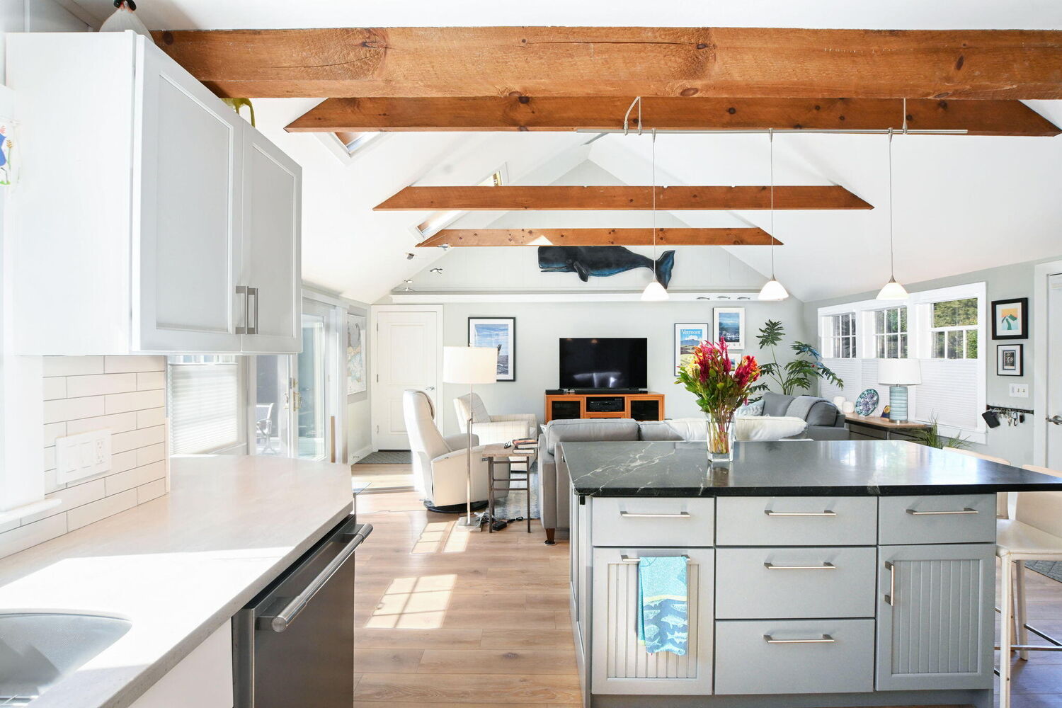 Kitchen Features | 0X0 Countertop(s): Quartz Flooring: Wood Stove(s): Gas Kitchen Upgraded Cabinets Cathedral Ceiling(s) Kitchen Island Recessed Lighting |