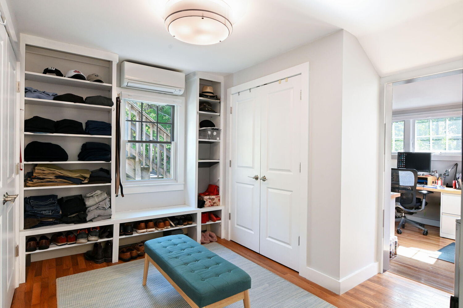 Bedroom | 0X0 Flooring: Wood Laundry Areas Recessed Lighting Office/Sitting Area Dressing Room Ceiling Fan(s) Built-in Features |