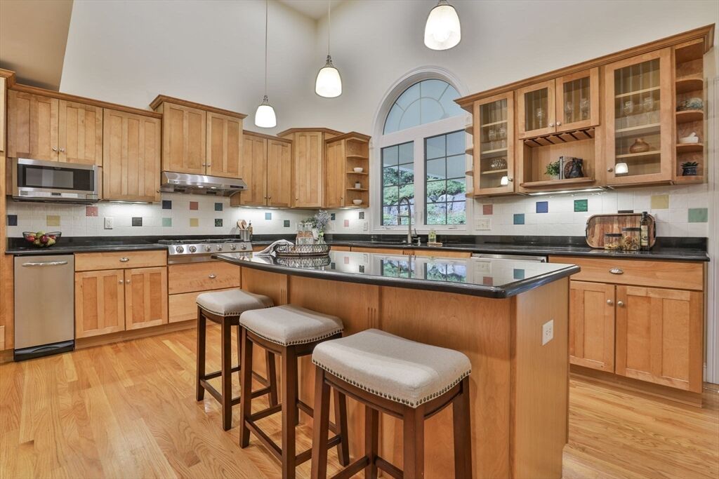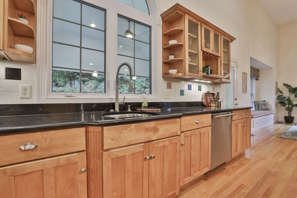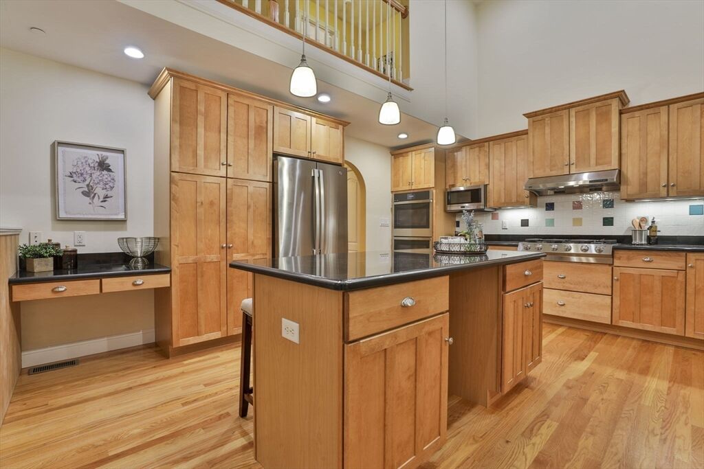 2007-originally built as the builder’s personal residence this thoughtfully crafted home offers quality, comfort & style in private serene setting. Beautiful stonework, lush perennials & charming farmers porch lead to welcoming foyer. The open-concept design has large kitchen w/ abundant storage & counter space seamlessly connected to dining area w/ soaring ceilings and large living room w/gas FP. Spacious 1st fl ensuite w/ cozy gas FP, oversize walk-in closet, 1st floor powder room & laundry complete main level. Upstairs find 2 bedrooms, full bath & a versatile space for home office or climate-controlled storage. Walk-out basement offers add’l finished space w/ ample raw storage & direct access 2 car garage. Exterior has a covered patio w/ ceiling fan, built-in speakers, gas hookup for grill & a tranquil water garden — perfect for relaxing. Located under 1 mile from Greenwood & Melrose Highlands commuter rail stops, close to bus, shops & restaurants in both Wakefield & Melrose.