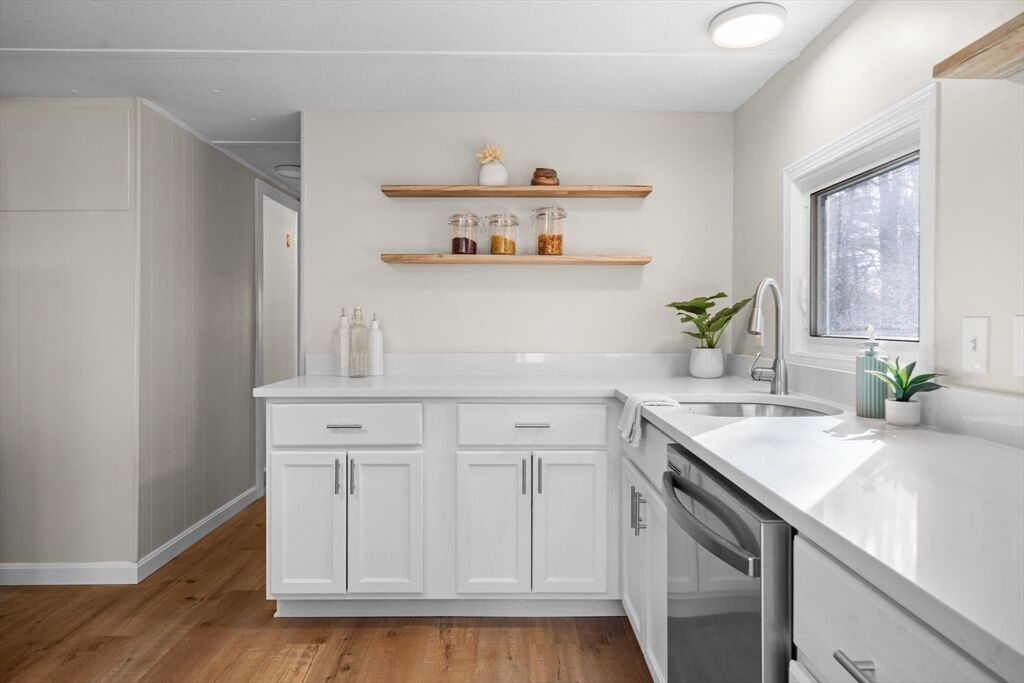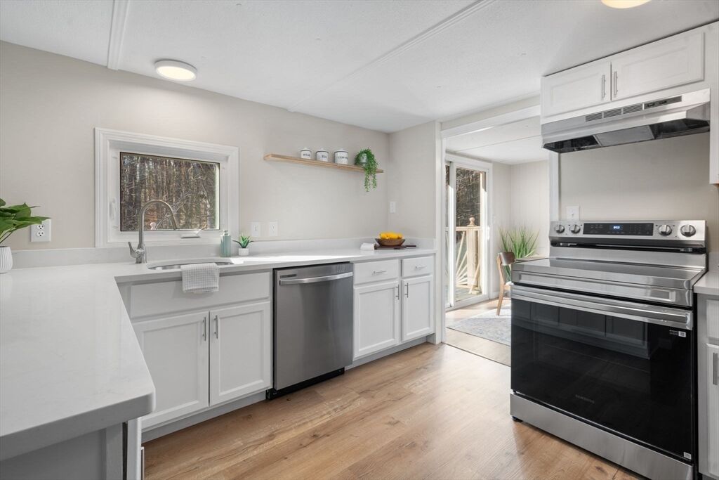 OFFER DEADLINE 11/25 @ 4 PM . Welcome to this well-maintained 4-bedroom, 2-bath ranch located on a dead-end street. This home has been recently updated throughout and is move-in ready. The kitchen features classic white cabinetry, quartz countertops, and new stainless steel stove and dishwasher. The bright and airy living room offers comfortable everyday living space. Fresh interior paint in neutral tones, new carpeting, and new vinyl plank flooring extend throughout the home.The large finished basement (not included in square footage) provides additional space and includes three storage rooms, new carpet, heat, and fresh paint. Exterior features include vinyl siding, vinyl replacement windows, an oversized deck, and a storage shed. The heated, 2-car garage offers ample space for parking, a workshop area, and additional storage. Beautiful easy to maintain yard. Close to Route 2, great opportunity and location.