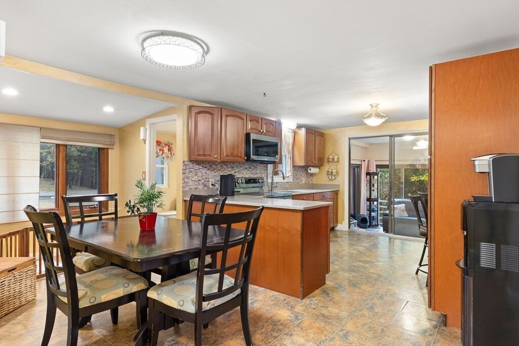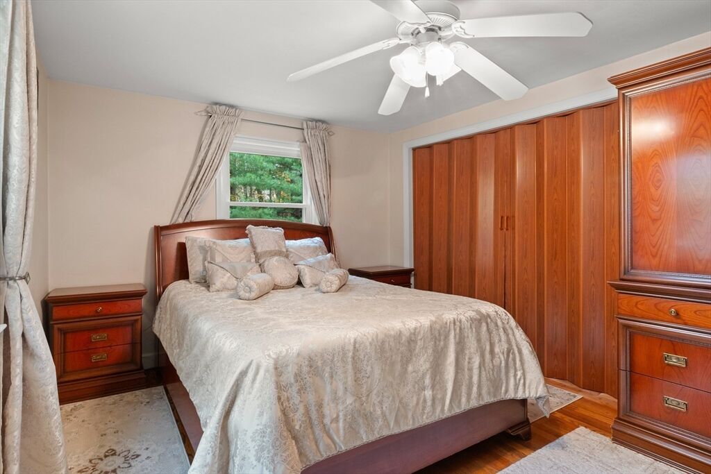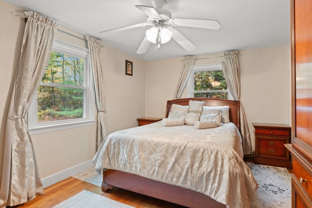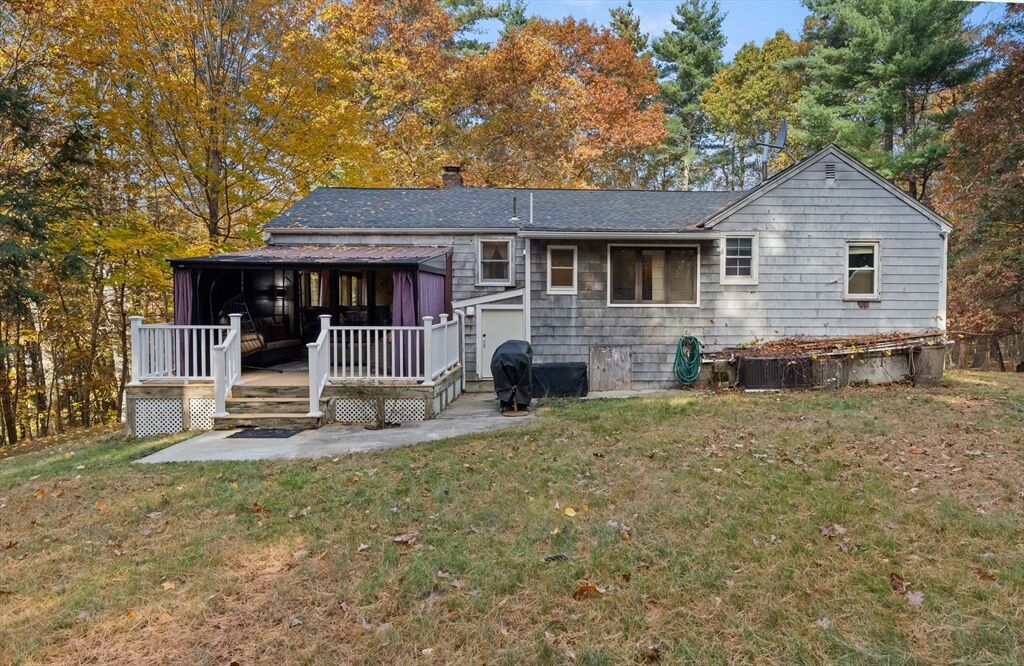 JUST LISTED!! LOCATION LOCATION! Enjoy one level living in one of Topsfield's most desirable neighborhoods! Surrounded by 2 lush acres, this sweet 3-bedroom, 1.5-bath Ranch with 1,200+ sf of living space is a rare find. A generous family room with a wall of windows and access to a delightful, covered porch providing a versatile indoor-outdoor space leading to a sprawling yard is one highlight on the main level. So is the roomy eat-in kitchen with ample counter space, breakfast bar, and dining area. A wood-burning fireplace adds charm to the living room with hardwood flooring. Three bedrooms, all with hardwood flooring, share a full updated bath. A large bonus room, large walk-in closet, and a flex room which would make a great office, guest room, even a home gym are on the finished lower level. Newer appliances, newer baths, 9-year-old heating system and privacy galore are just some of the hallmarks of this great family home. Showings begin Saturday!