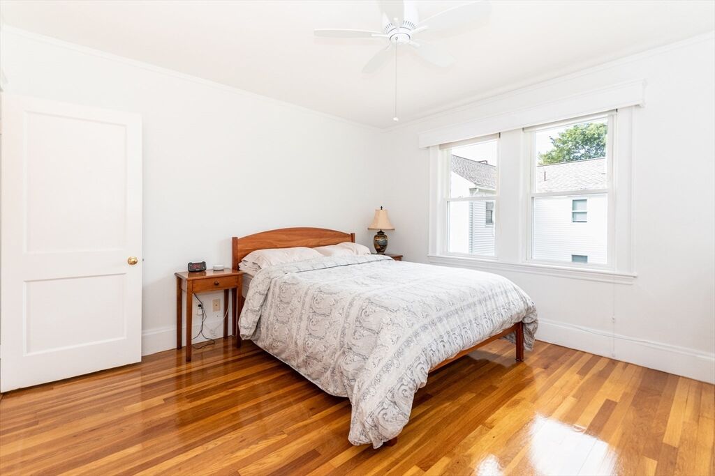 Bedroom 2 | 9X12 Ceiling Fan(s) Closet Flooring - Hardwood Lighting - Overhead Crown Molding |