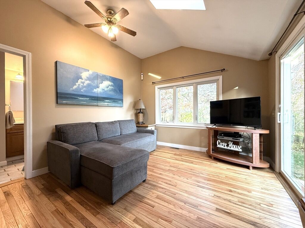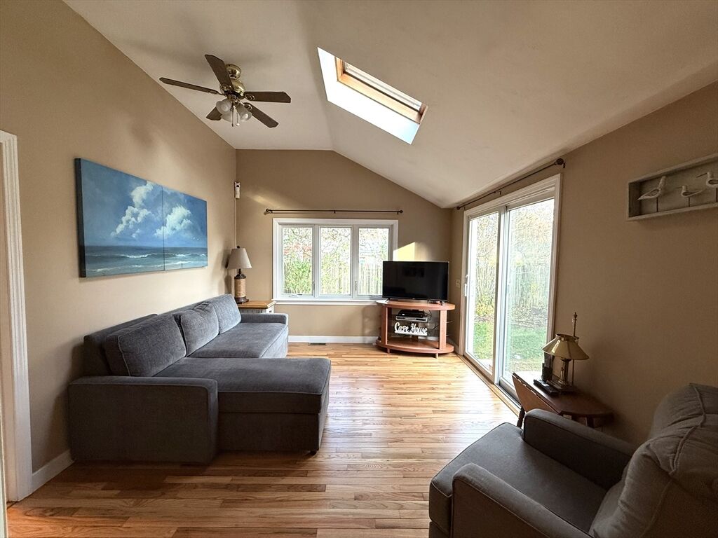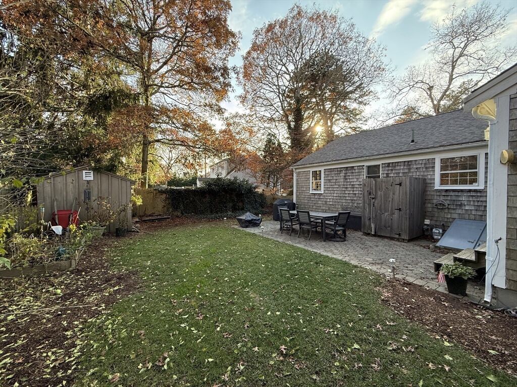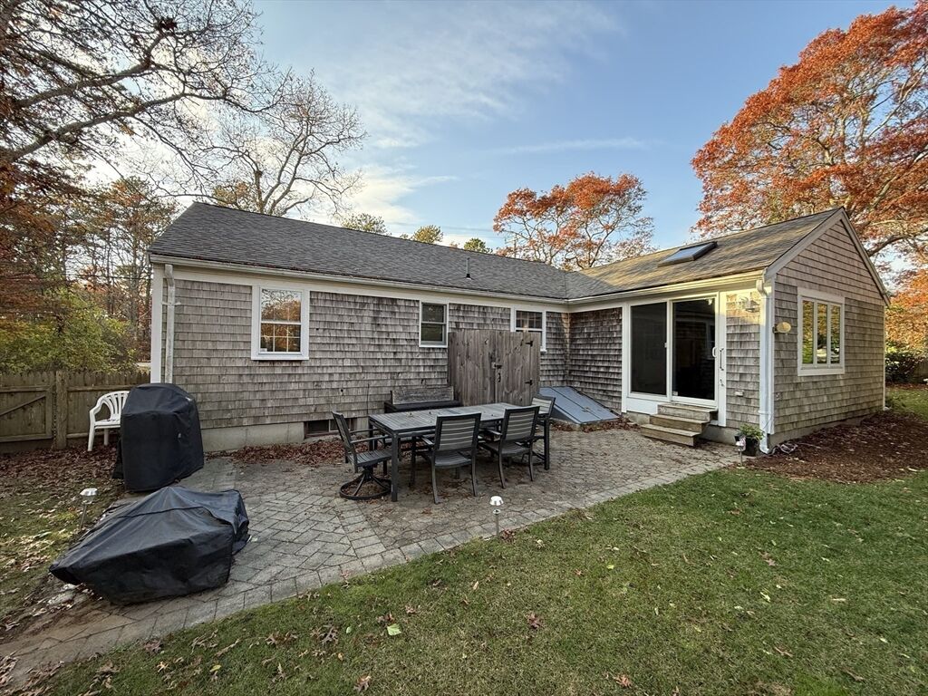 Your Cape Cod dream house awaits you! Conveniently located in the mid-Cape, near beaches, golf courses, shopping, a dog park and the rail trail. This open & inviting sunny ranch boasts hardwood floors throughout, a formal living room with a tray ceiling and working fireplace, high ceiling skylit den/family room, an open concept tiled kitchen with granite countertops and new appliances, 2 full bathrooms, 2 bedrooms on the first floor, and 2 bonus rooms on the lower level with a tiled hallway leading to designated laundry space. Fully enclosed fenced in private backyard, stone paver patio with outdoor teak floor shower, adorned with thoughtful landscaping and foliage. Attached one car garage, and paved driveway for 2 parking spaces, and a gravel section with 2 additional spaces. A MUST SEE! Open house 11/16 from 11-2pm.