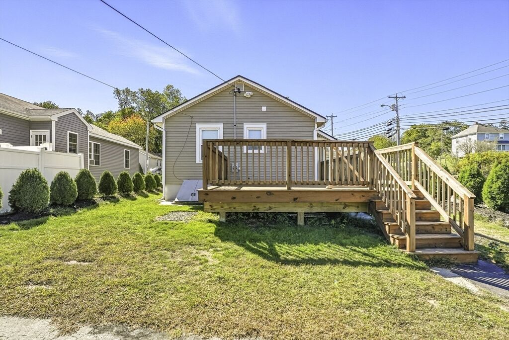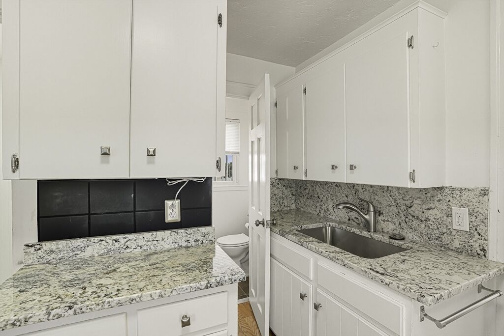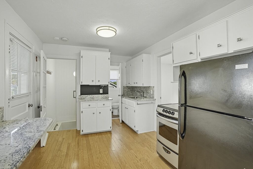 Charming, well-maintained, affordable ranch. This move-in-ready home boasts engineered hardwood floors throughout, features 2 bedrooms and an open kitchen/living area with granite countertops and included appliances. The bathroom includes a shower stall and tile flooring. A professionally waterproofed, partially finished basement with tile flooring includes a stackable washer/dryer, upgraded boiler, electric heater, and a sump pump with battery backup—perfect for a home office, gym, or storage, with extra space in the crawl space. Outside, a generous corner lot offers a detached storage bay, a large deck off the kitchen, and ample off-street parking. The low-maintenance exterior and no condo fees make this an ideal starter home or investment. Conveniently located with an efficient design, this upgraded home is perfect for easy living. Don’t miss out!