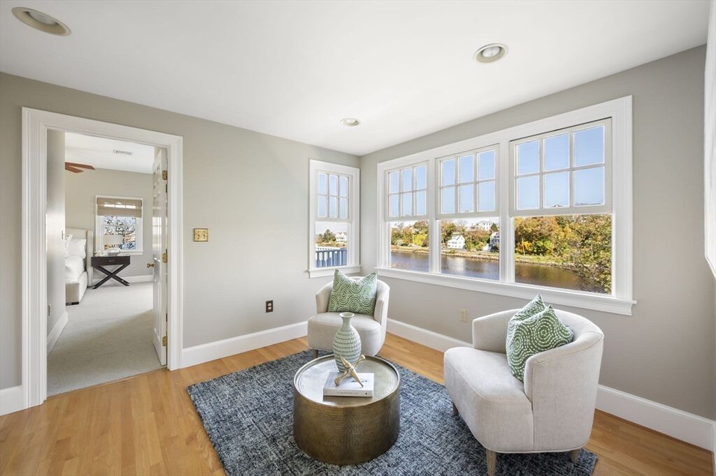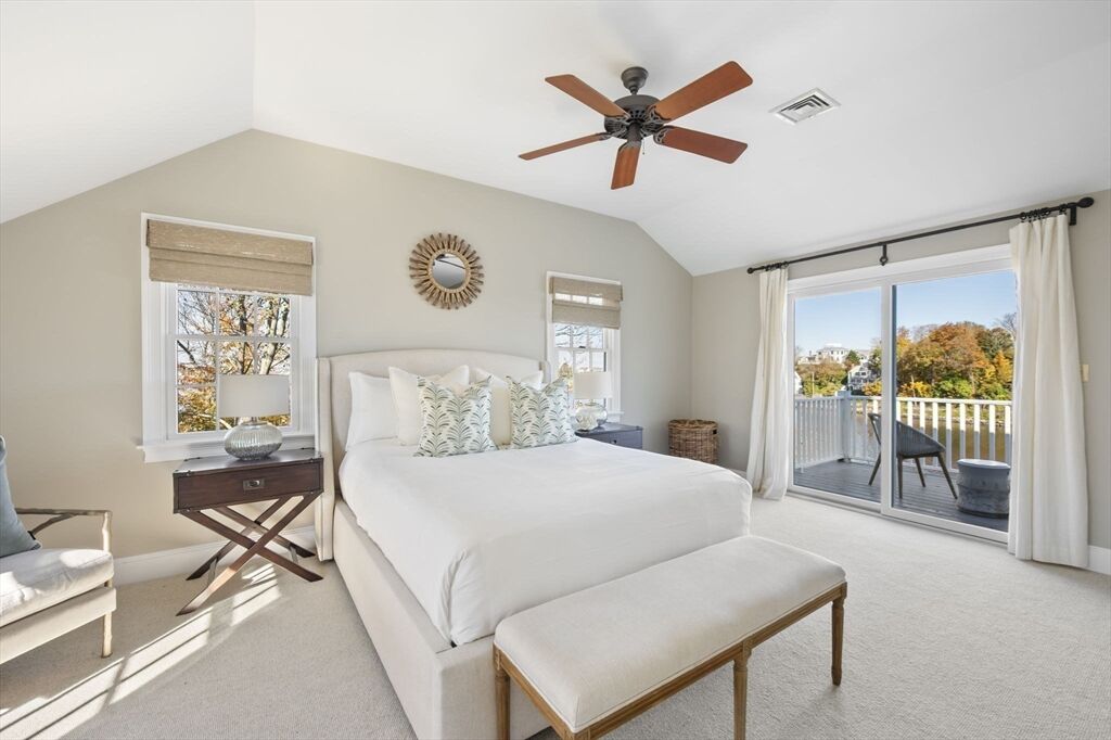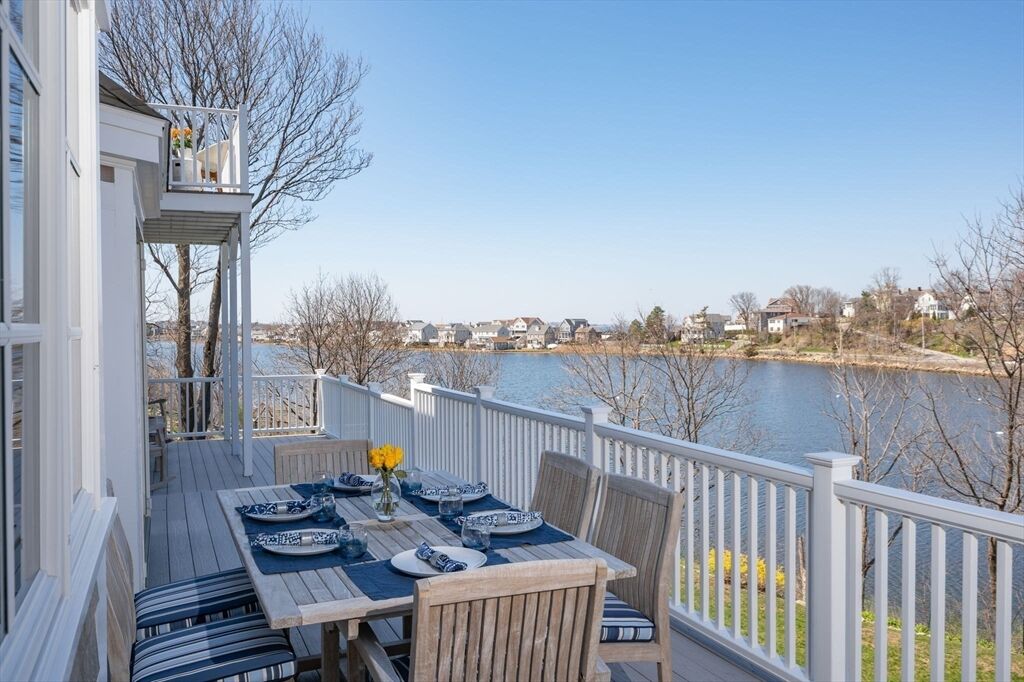 Quintessential New England coastal living with sweeping views of the Atlantic, Boston skyline, and Black Rock Beach. This updated 4 bedroom / 4.5 bathroom waterfront home offers water views from nearly every room and is washed in natural light. The open living and dining area with cathedral ceiling connects to a chef’s kitchen featuring Caesarstone countertops, neutral cabinetry, and stainless appliances. Enjoy outdoor dining and entertaining on the expansive deck overlooking the water. A first-floor guest suite adds flexibility. Upstairs, the primary suite boasts stunning ocean and Boston skyline views and a private deck. The second floor also features brand-new wool Berber carpeting in all bedrooms, adding warmth and refinement. The large private yard extends to Straits Pond for kayaking or paddle-boarding. Close to beaches, the commuter rail, commuter boat, and all that Cohasset offers — a perfect blend of coastal charm and modern updates.