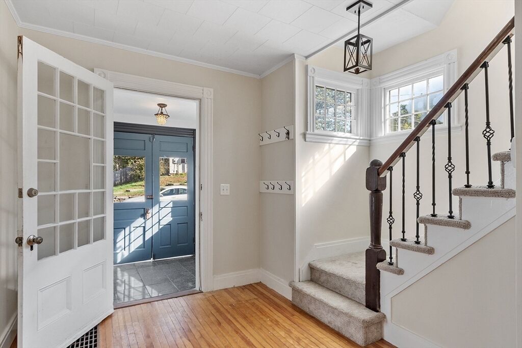 Charming and beautifully updated 3-bedroom, 2-bath home blending historic character with modern comfort. Originally built in 1857, this home features extensive updates including new plumbing and electrical, fresh interior and exterior paint, leveled and refinished floors, new countertops, a refinished deck with new railings, and a newly added second bathroom. The finished third-floor space offers versatility for a home office, playroom, or extra storage. Enjoy the inviting enclosed entryway with original doors, a welcoming front porch, and a quaint backyard perfect for relaxing or entertaining. Owned solar panels provide energy efficiency and savings. Conveniently located near Lucy Stone Park and the scenic Quaboag River—perfect for fishing and outdoor enjoyment—this home offers the best of charm, comfort, and location.