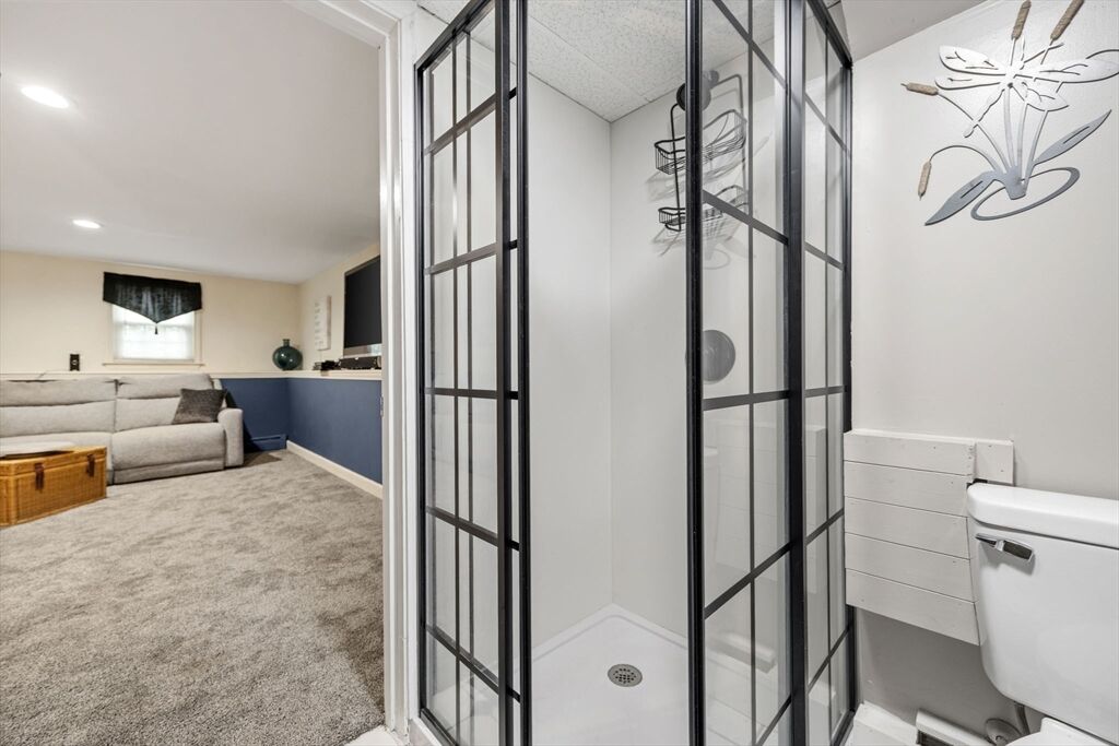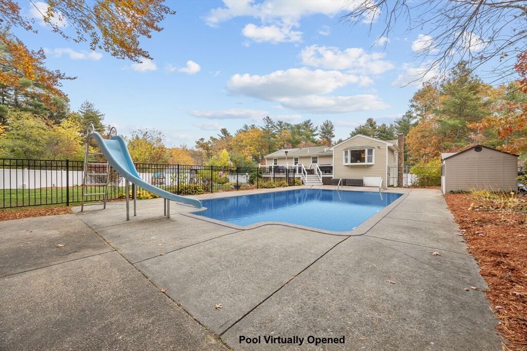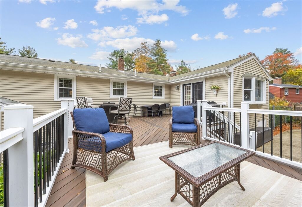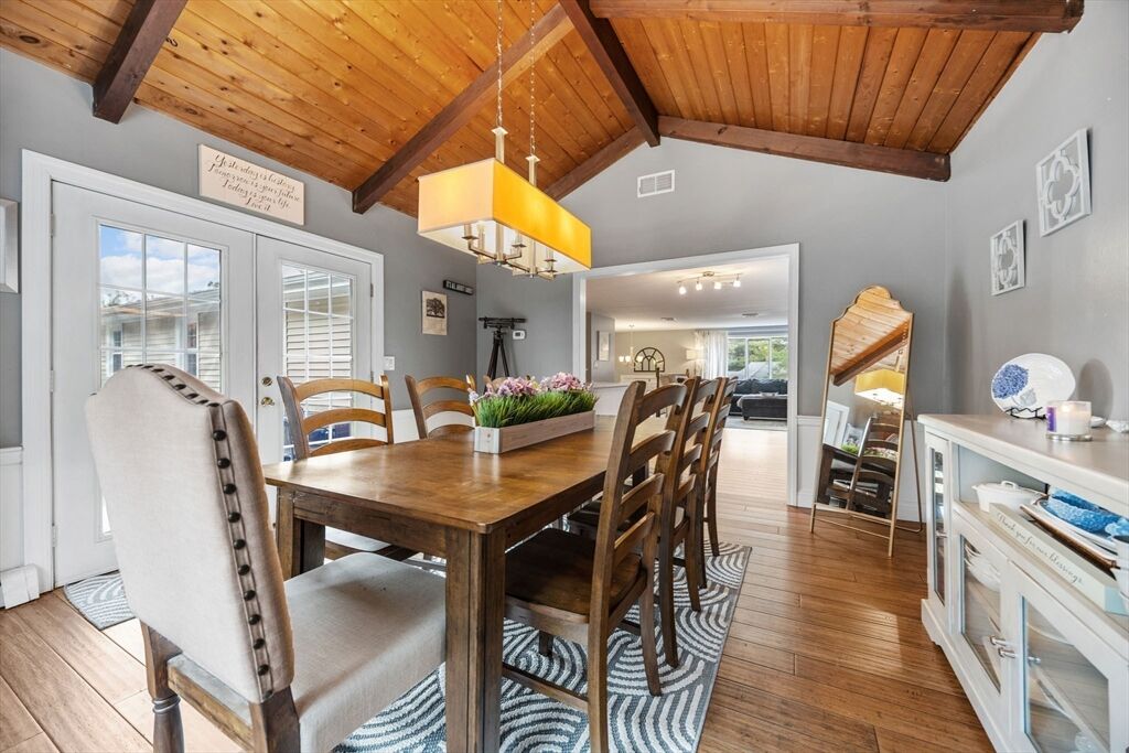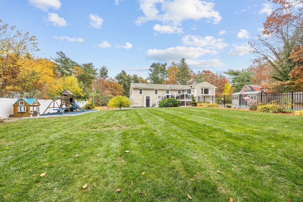 OPEN HOUSES ARE CANCELLED OFFER ACCEPTED. This oversized raised ranch offers almost 2,300 sq ft of living space on a beautiful half-acre lot. The large backyard is perfect for entertaining with an in-ground pool & basketball court. Inside, enjoy an updated kitchen with granite countertops & stainless steel appliances, gorgeous hardwood floors throughout, & an open floor plan featuring a cozy living room with fireplace, a dining room with a gorgeous wood-vaulted ceiling with French doors leading to a maintenance-free deck. The main bath is beautifully updated with a tiled shower, & the spacious primary bedroom includes an en suite half bath. Hardwood floors lie beneath ALL upstairs carpeting. The finished lower level offers a family room, bonus room, a home office, & a full bath with direct access to the 24x27 two-car garage...ideal for multi-generational living, a young adult suite, or live-in au pair. A warm & inviting home offering space, comfort & endless possibilities