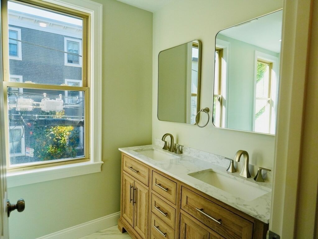 Excellent location. Quiet street within easy walking distance to Kendall Square. Completely gut renovated with 2 bedrooms and 2 full baths and a home office space. Sliding glass doors off the kitchen lead to private deck. Featuring all new high efficient building systems, high ceilings, eat in kitchens with custom cabinetry and quartz counters. Corner location offers 3 sides of exposure lending plenty of natural light. Central air, in unit laundry, and deeded parking with direct access to your back door. Taxes reflect 3 family. Condo fee approximate. Condo Docs in process.