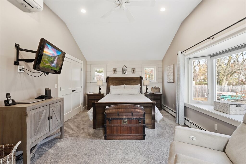 Discover this classic Ranch-style home, nestled on a spacious 0.51-acre lot in Holliston. This charming property offers approximately 1,536 square feet of comfortable single-level living, featuring three bedrooms and two full bathrooms. The bright and updated interior is the result of a comprehensive, full gut-renovation completed in 2017. This renovation included the addition/enlargement of the luxurious primary suite, alongside the installation of many brand-new components throughout the home. It provides warmth and ambiance with one fireplace, and year-round comfort is assured with mini-split a/c and hot water baseboard heat. The home is designed for functionality with a full basement that is partially finished, providing flexible space for recreation or future expansion. Exterior features include durable fiber cement siding, a useful storage shed, and a paved drive. Located in a desirable neighborhood, this property is a wonderful opportunity.