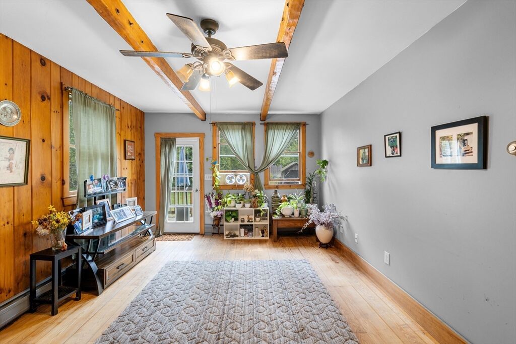 Nestled at 595C Quanapoag Rd, Dartmouth, MA, this single-family residence in presents an inviting home, ready for its next chapter. The kitchen offers a unique culinary space, highlighted by a light mint green wood ceiling and wood flooring , ready for the creation of memorable meals. In the living room, the wood beamed ceiling and wood wall create a warm, inviting atmosphere, perfect for relaxation and gathering. One of the bedrooms also features a wood wall, providing a cozy and distinctive personal space. This property includes 3 bedrooms and 1 full bathroom within its 1200 square feet of living area. The residence, built in 1880, sits on a generous 80,150 square foot lot. The outdoor spaces include a deck and a lovely backyard, providing opportunities to enjoy the natural surroundings. This charming residence offers a unique blend of character and comfort, ready to be enjoyed !