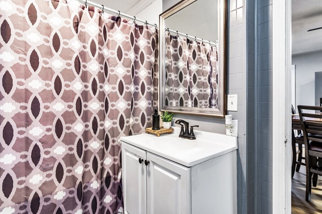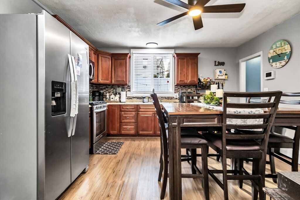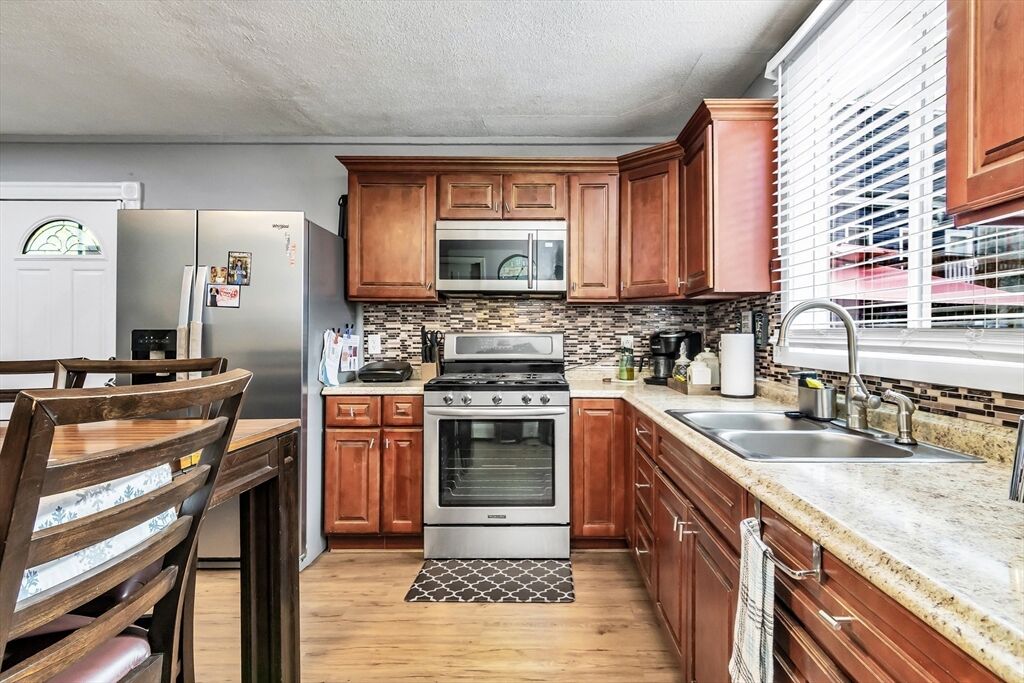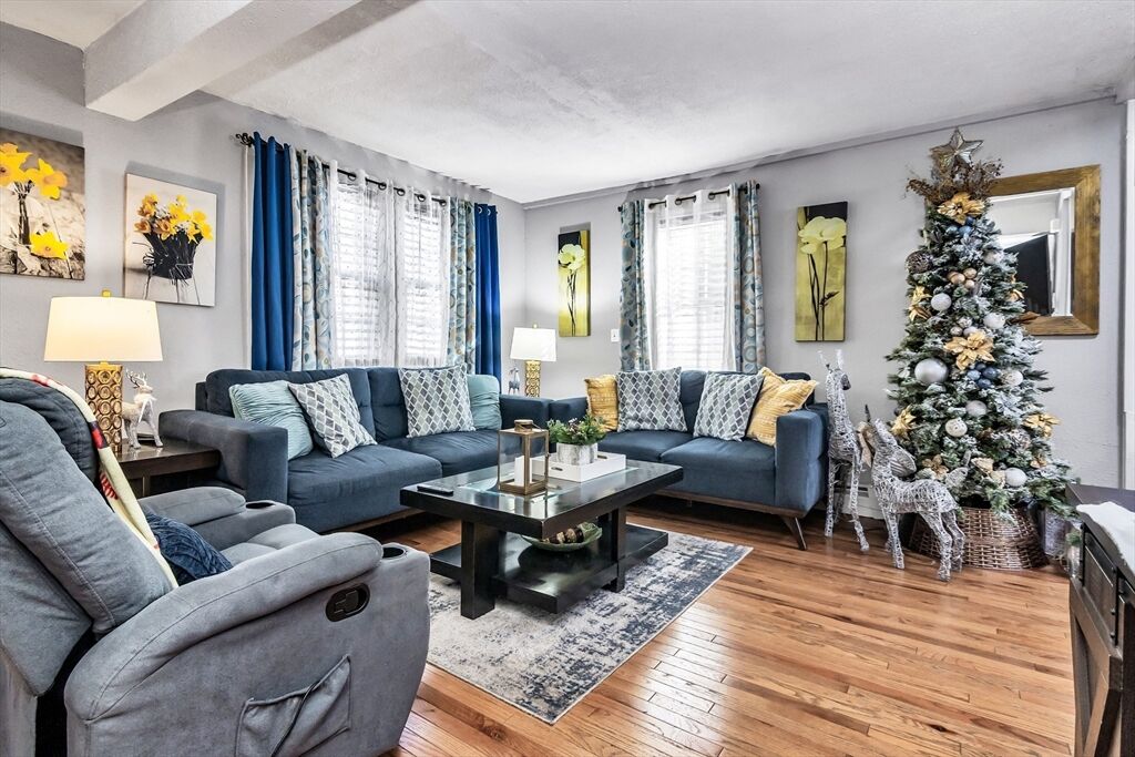 Charming and well-kept single-family home in a great Lawrence location, close to parks, shops, restaurants, and the highway. This home offers an updated kitchen with dark cabinets, stainless steel appliances, and modern flooring. The spacious living room features hardwood floors and high ceilings. Enjoy two full bathrooms, one with a whirlpool tub, and the convenience of first-floor laundry. Three comfortable bedrooms are located upstairs, plus a back deck perfect for relaxing. The basement offers plenty of potential to finish in the future.