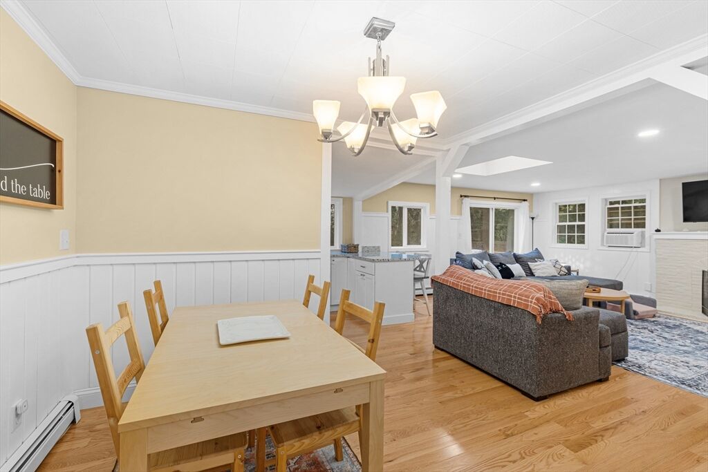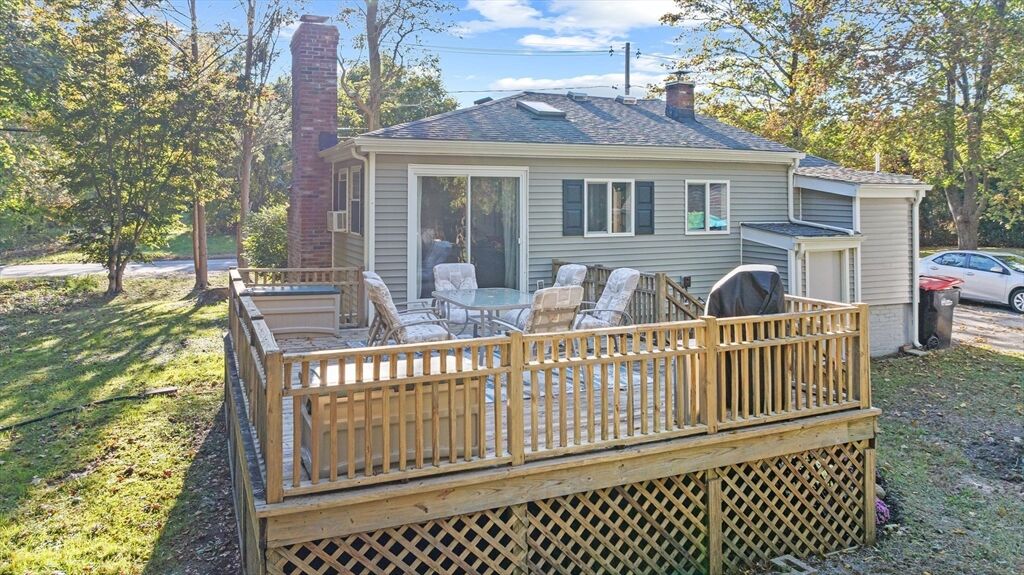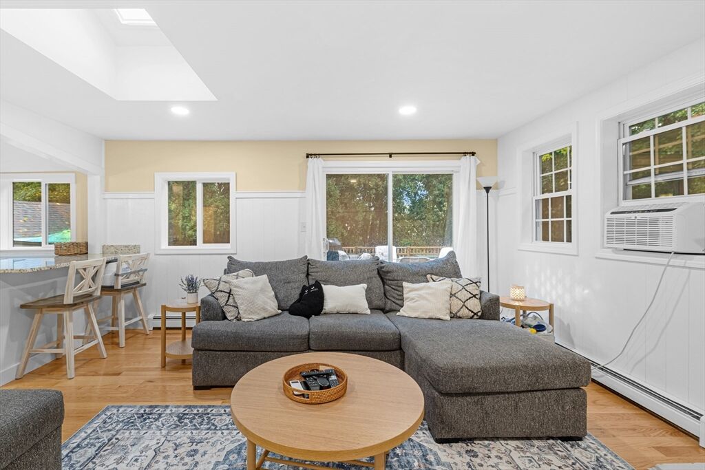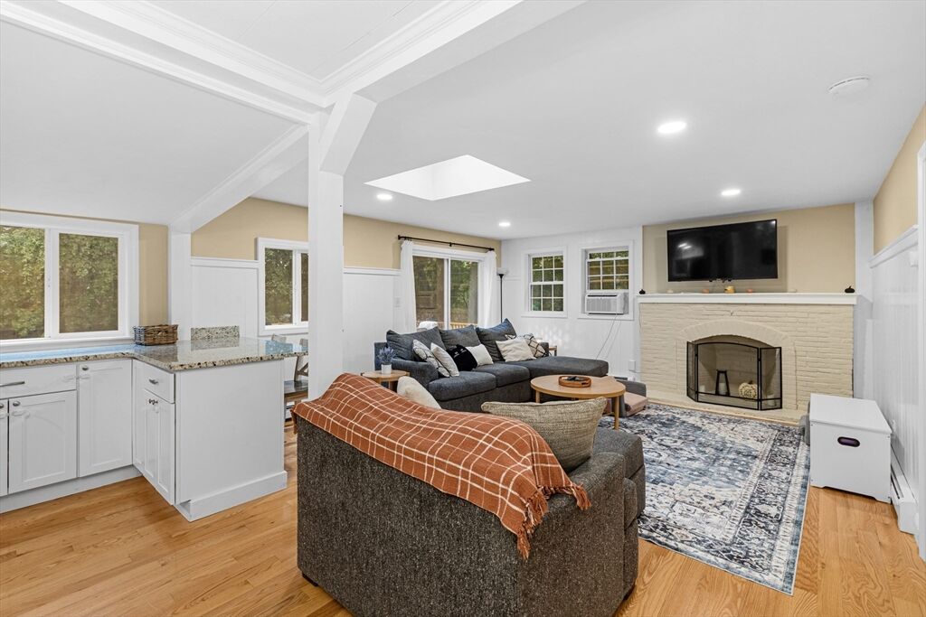 Lakeville Ranch with Space, Comfort & Convenience! Welcome to this 2-bed, 1-bath ranch on .62-acres, where privacy meets outdoor enjoyment. Perfect for downsizing, single-level living or starting a new chapter this home has everything you need! Open entryway leading to a bright living/dining area with kitchen. Hardwood floors throughout with a skylight that fills the space with natural light. A slider leads directly to a deck, perfect for morning coffee or outdoor dinners. The backyard a true highlight; generous in size to garden, entertain or just relax in your peaceful retreat. Living room fireplace is perfect for cozy nights and a bonus room offers space for a office, hobby room or a third bedroom. Detached garage & 4+ driveway, giving you plenty of parking & storage options. Just minutes from Rt. 105, 495, 24, & the Commuter Rail making travel simple. Local shopping, dining & amenities add to the ease of everyday life. Don’t miss your chance to make this gem your next Chapter!