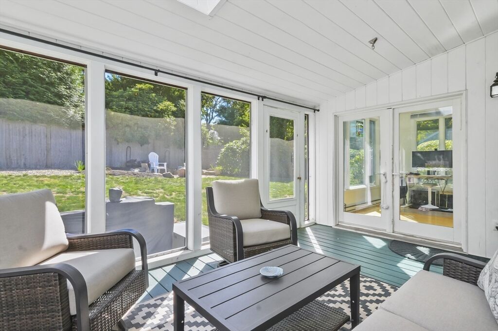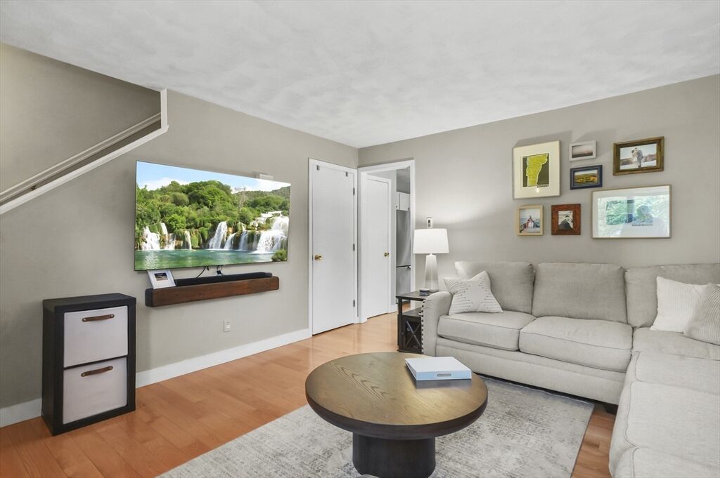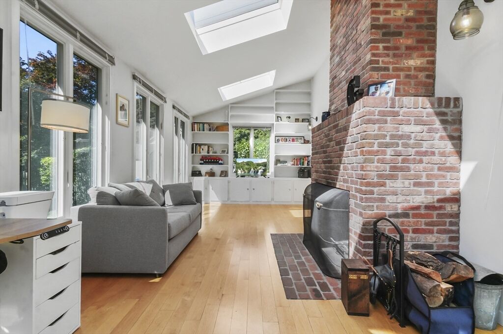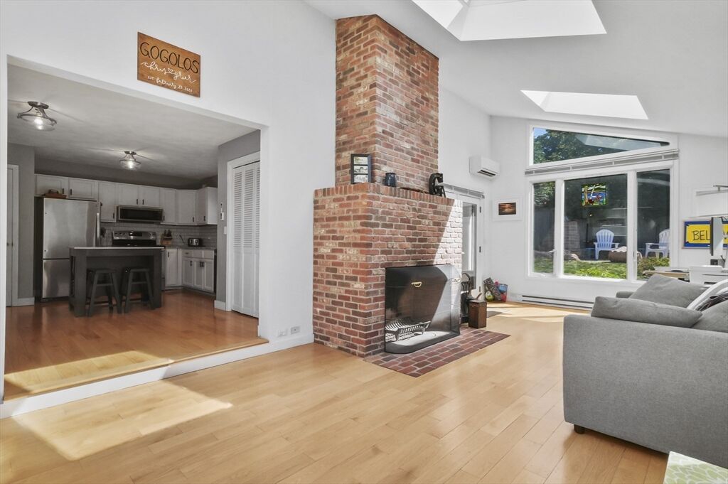Welcome to this beautifully maintained townhouse condex in the heart of Merrimac, where charm meets convenience. The large living room leads to an upgraded kitchen featuring modern cabinetry, tile back splash and granite countertops. Off the kitchen is the sun-drenched family room with oversized windows, cathedral ceilings, skylights, a striking fireplace, and custom built-ins that add storage, warmth and style. Upstairs are two sizeable bedrooms with plenty of closets and a full bath. Off the family room is a large, cozy screened porch perfect for morning coffee or long, summer evenings. The yard is lush with greenery, a firepit area and shed. In unit laundry and central air. Just minutes from Amesbury, the seacoast, and major highways, this home offers small-town tranquility with easy access to shopping, dining, parks, and trails. A rare blend of comfort, character, and location—this is a home you’ll fall in love with. Showing start at Sat. OH and accompanied appts and OH thereafter.