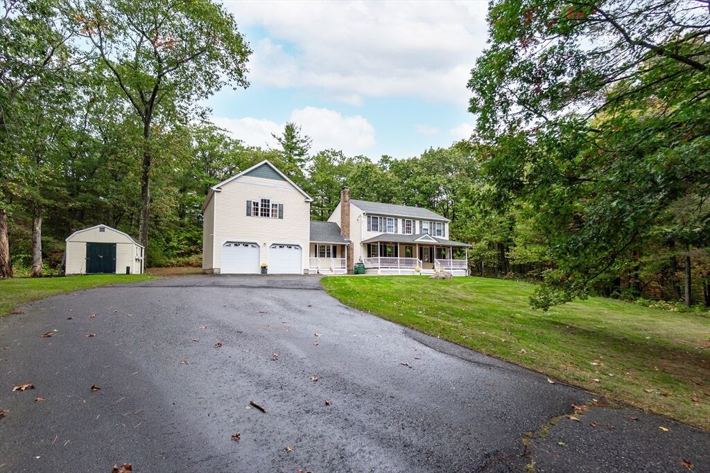 Longing for a home that offers a cul de sac setting combined with an abundance of privacy? Follow the tree lined, winding drive up to this inviting 3 bed, 2.5 bath Colonial. Welcoming wide farmers porch is a great space for outdoor entertaining or relaxing. Comfortable floor plan offers two story foyer, bright eat in kitchen, great size bedrooms and closet space, formal dining and living; fireside family room/office with french doors. Impressive spacious great room with cathedral ceilings, full bath and lots of light. 1st floor laundry, and central air. 2 car attached garage. Enjoy the best of both worlds!!! The feel of the rural New Hampshire life with the convenience, schools, and accessibility of desirable Franklin MA. Showings begin Saturday 10/25.