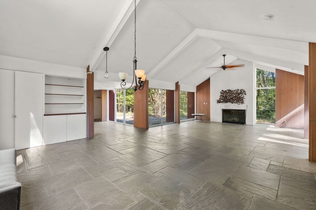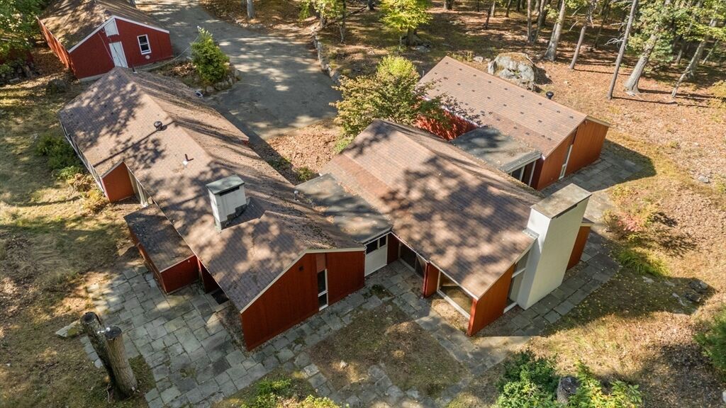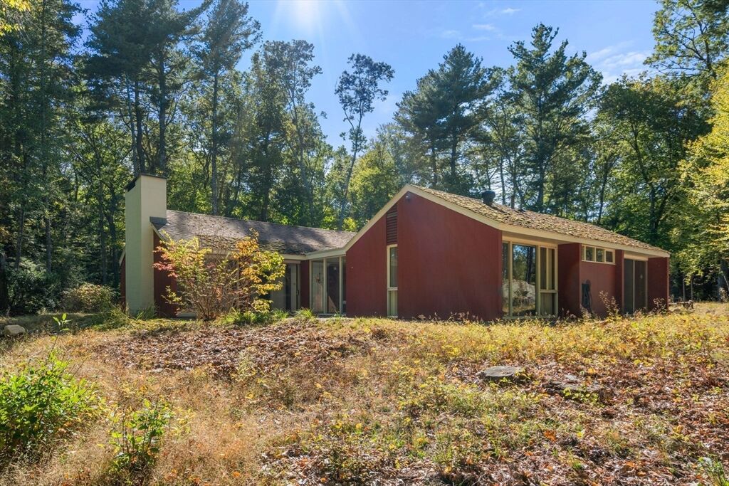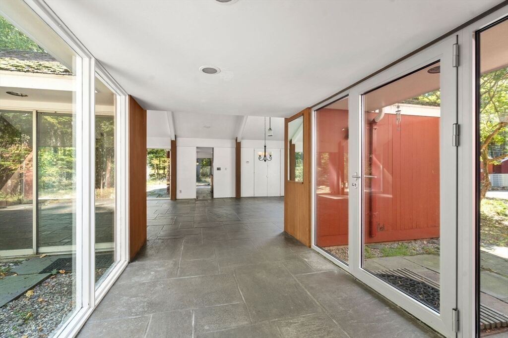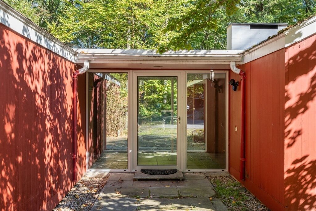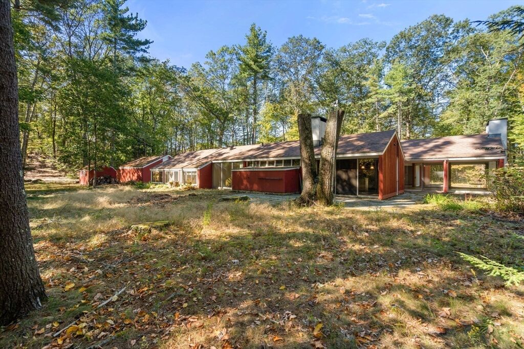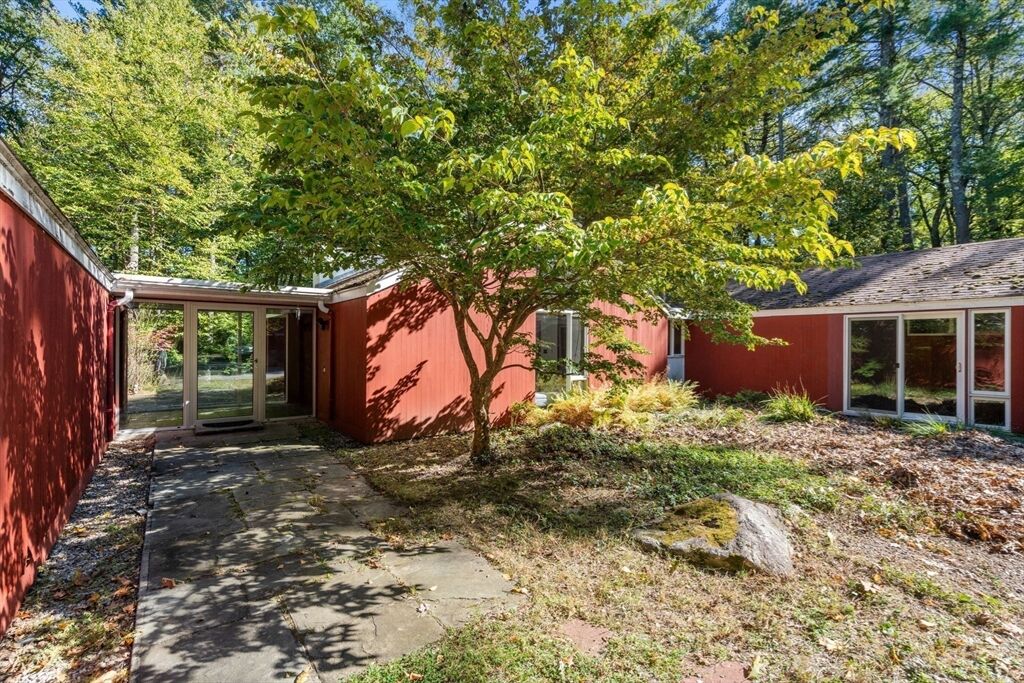Quintessential Hoover & Hill-designed mid-century modern on an unspoiled five-acre lot. A perfect ecosystem of natural stone, trees, and open land – look for glacial erratics. The thoughtful 4-bedroom, 3-bath layout offers endless flexibility and is ideal for multi-generational families or an ADU. The courtyard layout allows each room a unique natural view. It has cathedral ceilings, stone floors, two fireplaces and copious built-in storage. Detached, oversized two-car garage/shop with electricity features two extra rooms, a storage loft, and potential for heating. Your separate office or studio? Located near the Gropius house, Carroll School, and DeCordova, it is a leisurely amble to Walden. This Mid-Century Modern residence maintains its integrity to the original architecture; however, this is a major project and is being offered as is, and is not in move-in condition. Title V to be provided by buyer. The drive is shared with the neighbor.