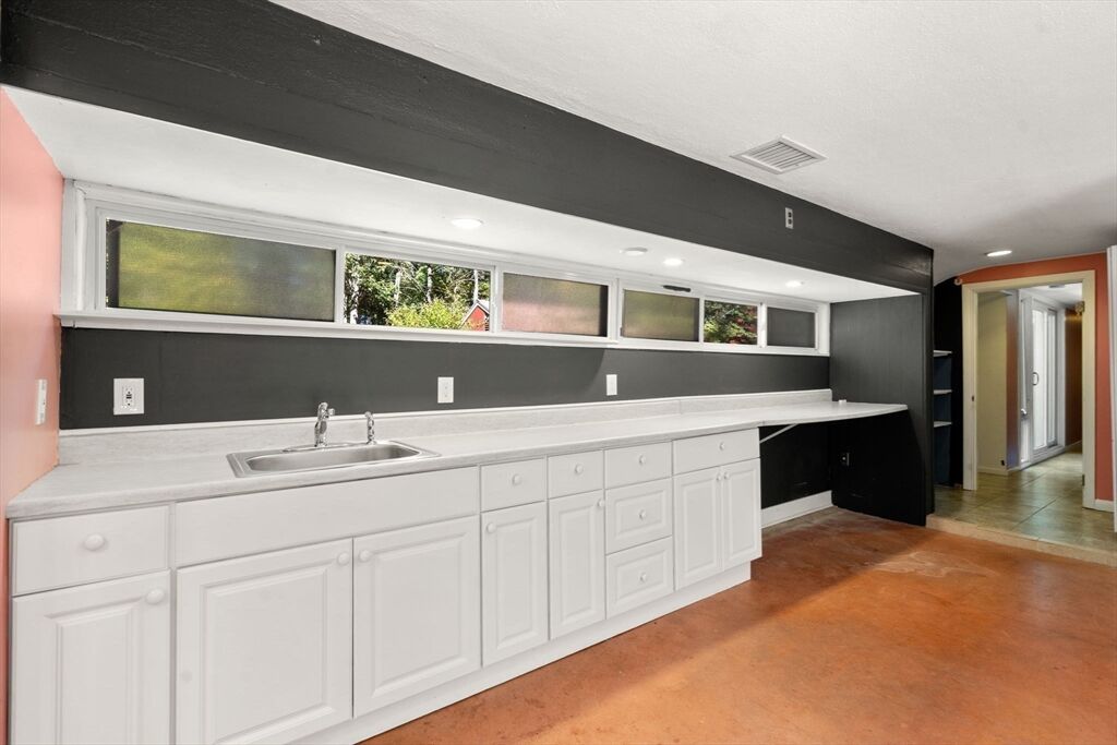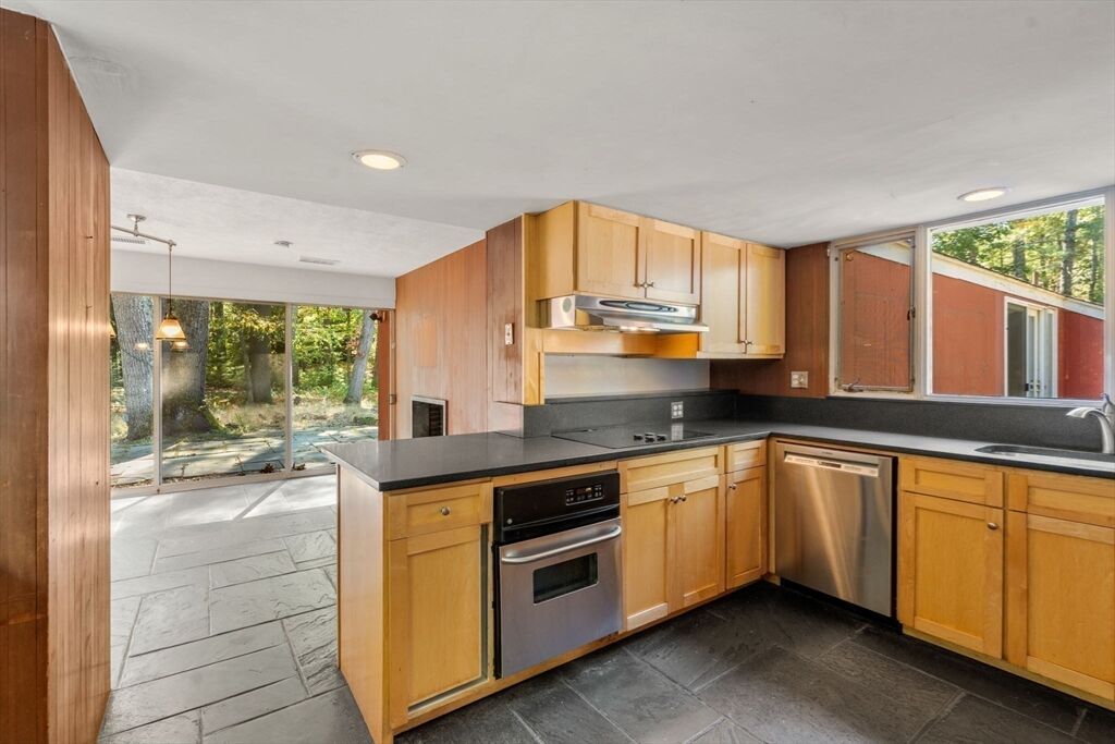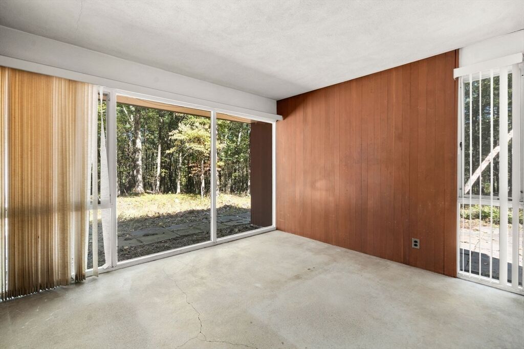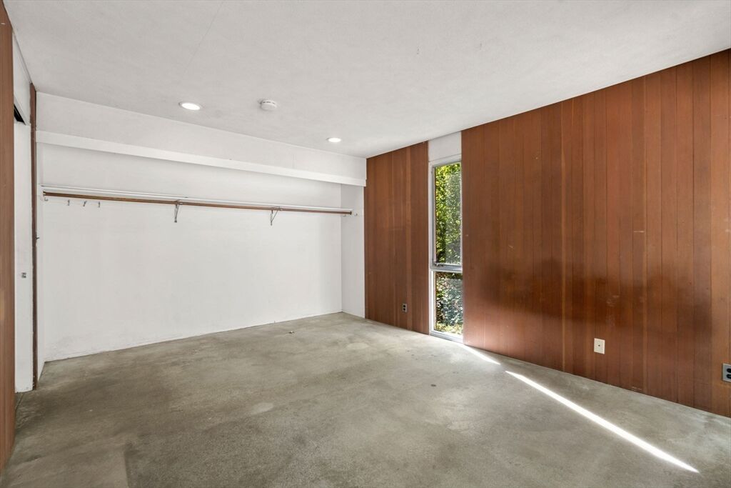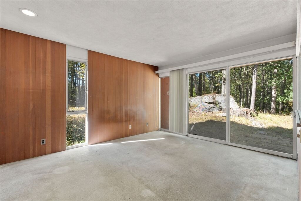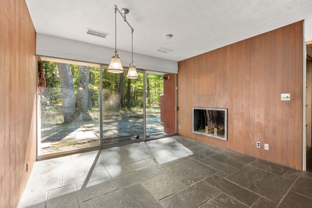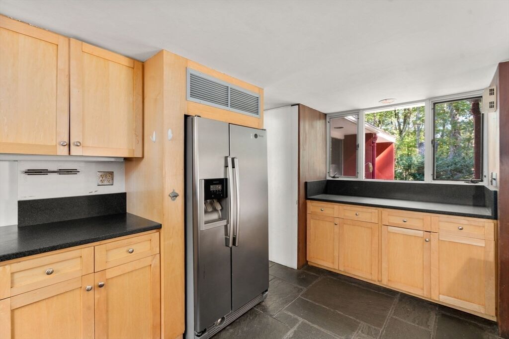 Quintessential Hoover & Hill-designed mid-century modern on an unspoiled five-acre lot. A perfect ecosystem of natural stone, trees, and open land – look for glacial erratics. The thoughtful 4-bedroom, 3-bath layout offers endless flexibility and is ideal for multi-generational families or an ADU. The courtyard layout allows each room a unique natural view. It has cathedral ceilings, stone floors, two fireplaces and copious built-in storage. Detached, oversized two-car garage/shop with electricity features two extra rooms, a storage loft, and potential for heating. Your separate office or studio? Located near the Gropius house, Carroll School, and DeCordova, it is a leisurely amble to Walden. This Mid-Century Modern residence maintains its integrity to the original architecture; however, this is a major project and is being offered as is, and is not in move-in condition. Title V to be provided by buyer. The drive is shared with the neighbor.