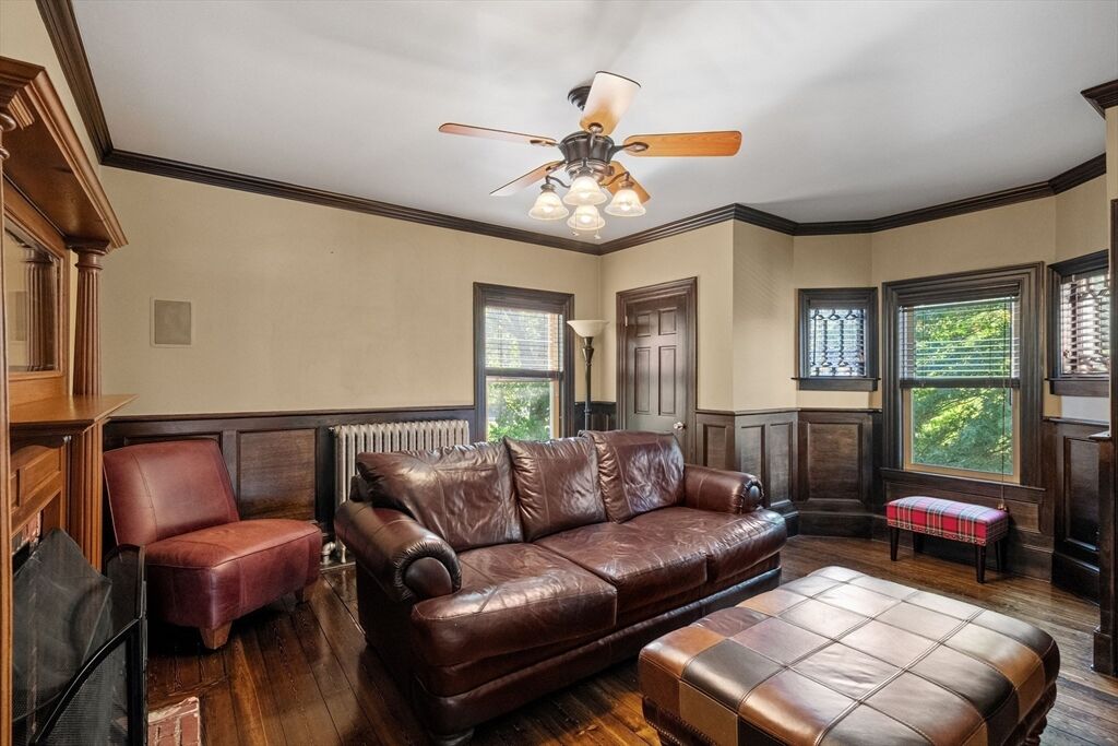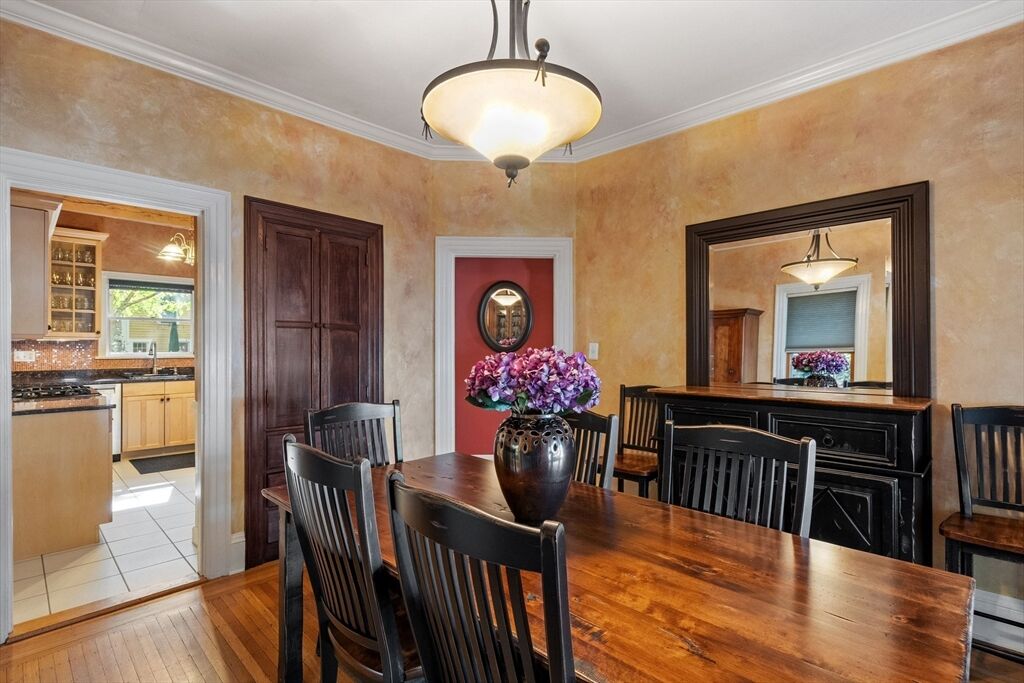 Welcome to this charming single-family Colonial/Antique home in Reading, Massachusetts! As you step through the front door of the historical Charles A. Damon House from the farmer's porch, you'll be greeted by an impressive entryway. This home boasts 10-foot ceilings, crown moldings, built-in cabinets in the dining room, and hardwood floors throughout the first floor. Upstairs 3 of the 4 bedrooms have wall to wall carpet and one of the bedrooms has hardwood floors and a fireplace.. This beautiful residence offers seven rooms, four bedrooms, and two full bathrooms, spanning just under 1,800 square feet of living space. Both bathrooms feature tiled showers, and the kitchen is nicely updated and all appliances are to convey with the sale. Conveniently located close to major highways and the commuter rail, this home perfectly blends classic elegance with modern convenience. Showings begin on Thursday, October 2nd! This home is the one you have been waiting for! Do not wait to take a look