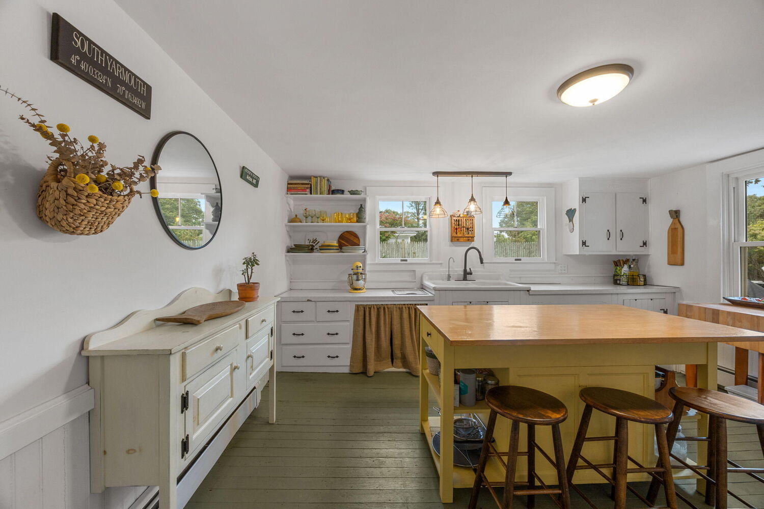 Step into the warmth and character of this beautifully preserved 1900-built home, where classic Cape Cod architecture blends seamlessly with thoughtful modern updates. Nestled in a prime South Yarmouth location near the Cape Cod Rail Trail and Ocean Beaches, this inviting residence offers a lifestyle of comfort, charm, and outdoor enjoyment.Inside, the heart of the home is a country-style kitchen featuring a vintage cast-iron double sink, center island, and timeless appeal. Hardwood floors and elegant dental molding add a touch of sophistication throughout the living spaces, while the sunroom provides a cozy retreat bathed in natural light.Recent upgrades include a stylish new bathroom and a high-efficiency Bosch boiler with a tankless hot water heater.Step outside to discover a backyard oasis designed for relaxation and entertaining. Extensive new landscaping frames stone walkways that lead to a custom firepit, an outdoor kitchen / patio area perfect for summer gatherings, and a dedicated vegetable garden area. A spacious outdoor shower, tucked beside a well-appointed shed, adds a touch of coastal luxury to this backyard haven.