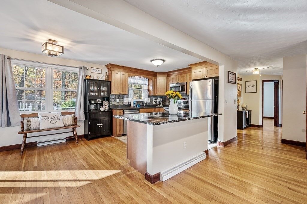 Beautiful, spacious, 3 bed, 2 bath home in charming, quiet neighborhood in Bellingham. With over 2,000 SqFt of living space plus a new, composite deck and a fenced in backyard, this home has plenty of space for everyone to live comfortably, work, play and entertain! BRAND NEW ROOF just installed! So much natural light within plus new fixtures and recessed lights installed. Hardwood floors throughout most of main level. 200 Amp electric service, oil tank, and kitchen are less than 10 years old. Dishwasher, Dryer and Hot Water Tank less than 2 years old. Kitchen features an island with granite countertops, stainless steel appliances and plenty of room for informal and formal dining. The 1-car garage has a smart garage door opener with an external built-in house generator outlet. Short distance to Bellingham High School, Forge Park Commuter Rail, Silver Lake, Snett Trail and Providence. Come see it before it's gone!