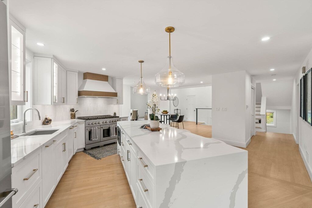 Completely renovated and masterfully reimagined, this stunning contemporary home impresses! Privately set on 2.61 acres, a dramatic foyer welcomes you with soaring ceilings, crisp white finishes, and walls of glass that bathe every space in natural light. Designed for modern living and effortless entertaining, the open floor plan showcases a spectacular vaulted living room and state-of-the-art eat-in kitchen with sleek white cabinetry, a large quartz island, and premium stainless-steel appliances. The adjoining family room centers on a striking floor-to-ceiling gas fireplace and flows to an expansive composite deck overlooking the brick patio and flat, park-like backyard. Offering four spacious bedrooms—including first- and second-floor primaries with luxurious en suites and walk-in closets—this home also features a finished lower level with game room, half bath, laundry, and abundant storage. Enjoy top Weston schools, serene privacy, and easy access to highways and the commuter rail.