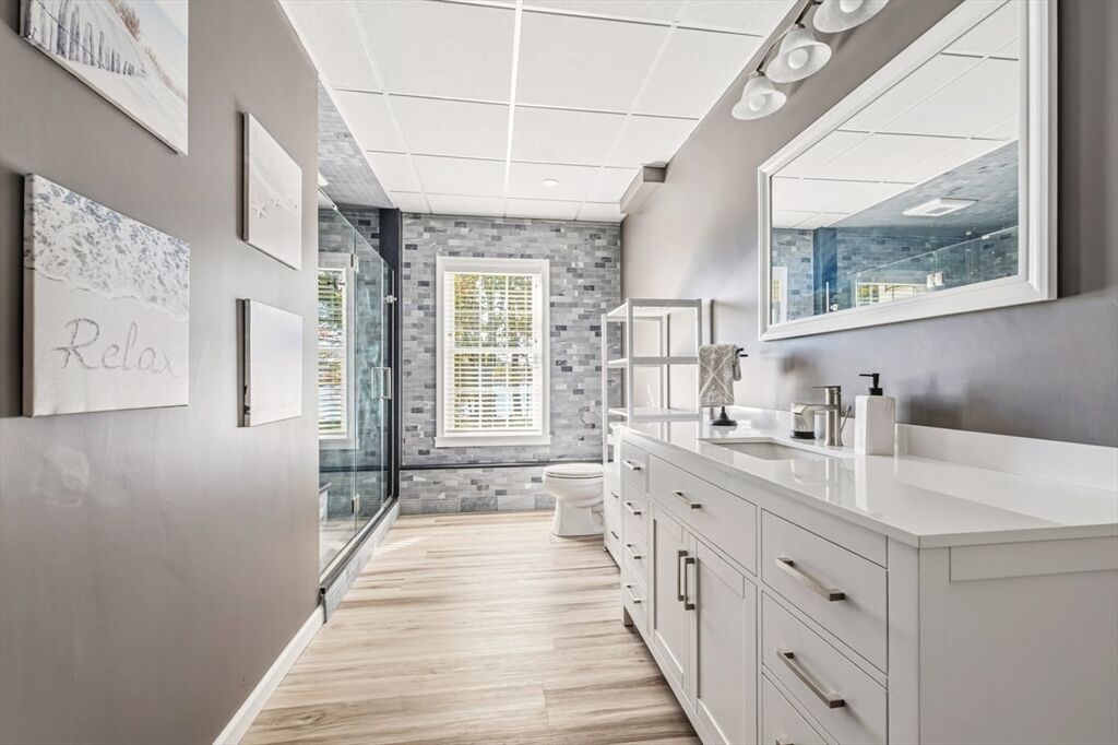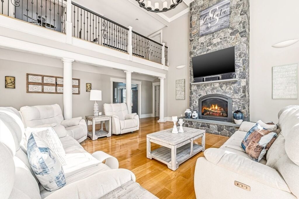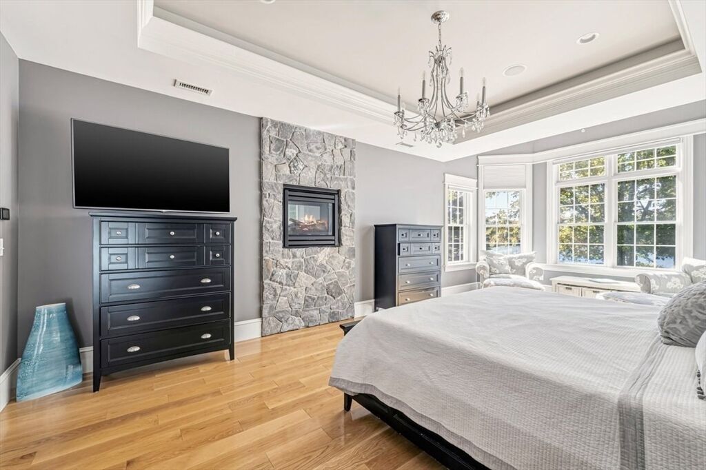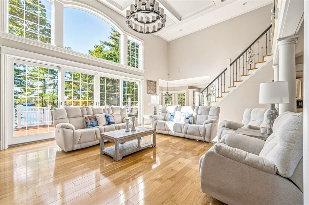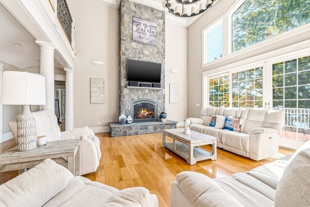 Welcome to your WATERFRONT dream home! Custom-built masterpiece where no detail has been overlooked. Stunning property features 4 spacious bedrooms and 4.5 elegant baths, offering the perfect blend of luxury, comfort, and functionality. Step inside your grand foyer and take in the soaring cathedral ceilings and striking stone fireplace, creating a warm and inviting centerpiece of the home. Chefs kitchen is like no other- with huge center island, walk-in pantry, and sunlit breakfast nook. First floor primary suite offers double sided fireplace, vaulted ceilings, and SPA-like bathroom. Second floor offers 3 additional bedrooms, each with attached baths, and a home office where the views will distract you! You will love the finished lower level with full walkout - Luxe family/game room, wet bar, and bonus guest room with full bath. This home is meant for entertaining...with a surprise feature that few homes have. Abuts 46 Acre Wenham Pond & is only minutes to Plymouth Waterfront!