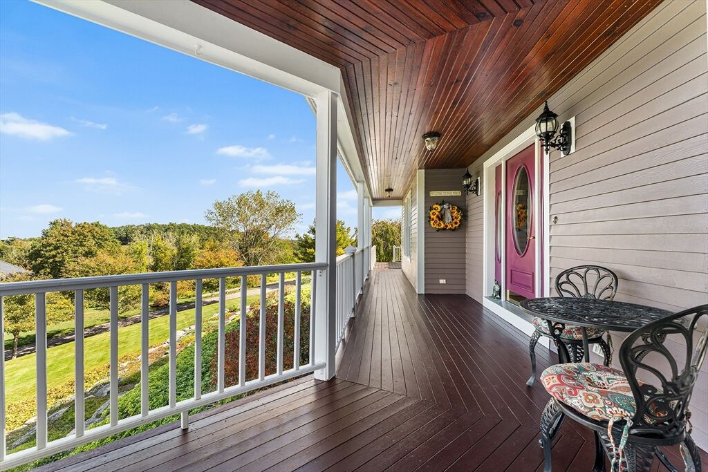 Perched atop a scenic hill and set on 2 acres, this residence offers breathtaking 360-degree views of rolling hills, farmland, and distant mountains. Designed with timeless craftsmanship and maintained with care, the home blends elegance and modern comfort across three levels. A wraparound deck provides the perfect vantage point to enjoy the natural surroundings. The heart of the home features an open layout between the sun-filled family room and kitchen, with oversized windows framing the views and a fireplace adding warmth. The kitchen includes a bright breakfast nook, abundant cabinetry, and a large walk-in pantry, while the formal dining room with French doors allows effortless indoor-outdoor living. The private office and second living room add versatility. Upstairs, the primary suite offers a spa-like bath and walk-in closet, joined by three additional bedrooms and a laundry room. The finished lower level, with high ceilings and full-size windows, offers additional living space.