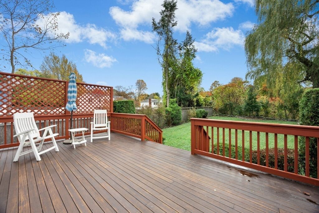 Appealing young Colonial, priced well below the assessed value, sited in the desirable Bridge School district. Set on a lovely, private 15,025 sf. lot, this home offers a blend of comfort, style, functionality. The inviting first floor features gleaming hardwood floors, extensive millwork & detail, and a flexible LR that can also serve as a home office with a wall of built-ins. Spacious FR is a true highlight, w/cozy fireplace and even more custom built-ins, ideal for everyday living and entertaining. Enjoy a private deck overlooking a peaceful backyard with/shed. Four upstairs bedrooms include a spacious main suite w/walk-in closet, private bath. Additional potential in the walk-up attic offers expansion possibilities. Improvements include: newer gas heating/cooling system, Rinnai hot water, washer and dryer for buyer. This home combines timeless appeal w/modern convenience in a sought-after neighborhood within walking distance of the Old Res for swimming/ice skating, walking trails.