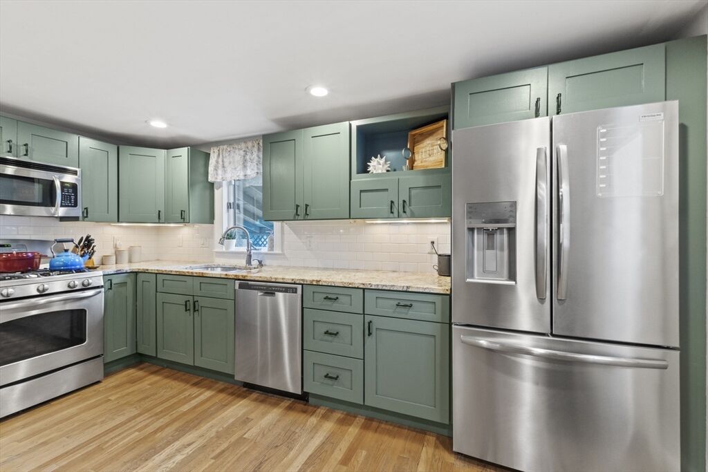 Beautifully updated and thoughtfully designed, this charming Cape in desirable Braintree offers a perfect balance of comfort and style. The inviting interior features an open layout with hardwood floors, recessed lighting, and a cozy fireplace that anchors the main living space. The modern kitchen boasts granite counters, stainless appliances, upgraded cabinetry, and a custom bench seat with storage, ideal for gatherings and everyday meals. Three full baths, including one with radiant heated flooring, add convenience and luxury. The spacious primary suite offers a private retreat with abundant natural light and a generous layout. Outside, enjoy a covered patio and fenced yard—ideal for entertaining or relaxing. With easy access to schools, shops, parks, and major highways, this home combines modern updates, thoughtful details, and an exceptional location in Braintree’s sought-after neighborhood. All offers if any due by Monday 10/27/25 at 5 P.M.
