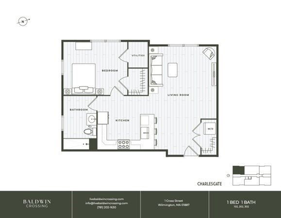 Introducing Unit 201 at Baldwin Crossing — Wilmington’s newest boutique condo community overlooking the park. This thoughtfully designed 1-bedroom, 1-bathroom home features an open-concept layout with clean lines and high-end finishes. The sleek gourmet kitchen showcases quartz countertops and stainless steel appliances, while expansive transom windows fill the space with natural light. Enjoy the convenience of in-unit laundry, energy-efficient systems, central air, elevator access, a deeded parking spot with access to EV charging stations, and exterior security for added peace of mind. Situated directly across from Yentile Farm Park, this home offers leafy views and access to serene green spaces perfect for relaxation and recreation, all just minutes from shops, dining, the commuter rail, and I-93 & I-95. Baldwin Crossing is a rare opportunity to own brand-new construction in Wilmington without compromising on location, lifestyle, or value. Don’t miss out!