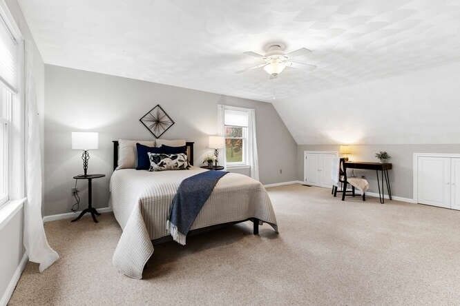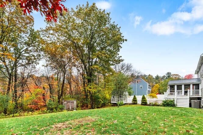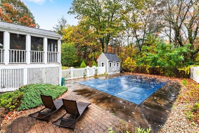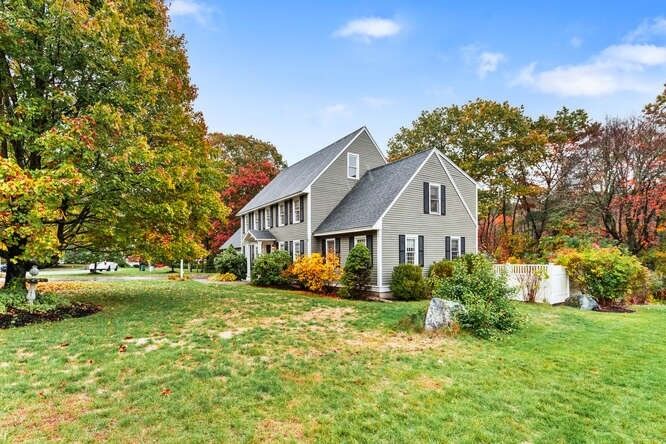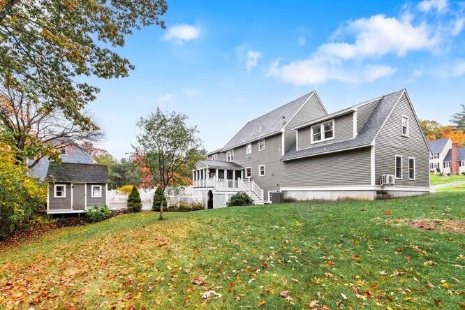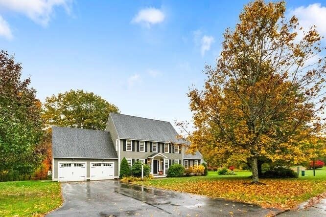 Quintessential New England center-entrance colonial graces a peaceful cul-de-sac in sought-after Groveland. This home blends sophisticated living spaces with modern amenities.The bright eat-in kitchen showcases custom-crafted cabinetry, a center island, and flows seamlessly to an inviting sun porch. Plenty of space for all your gatherings! Three generous bedrooms crown the second floor. Primary suite boasting a stunning walk-in closet with custom built-ins and clever eave storage, truly the star of the show! A dedicated home office adds versatility to the upper level. The main floor impresses with a welcoming great room embodying classic New England charm. Outside, a refreshing pool anchors the yard, complemented by extensive lawn space and two storage sheds. Two-car attached garage, finished bonus space and workshop in basement, complete with thoughtful storage solutions throughout. This meticulously maintained property offers the perfect blend of function and elegance. A true gem!