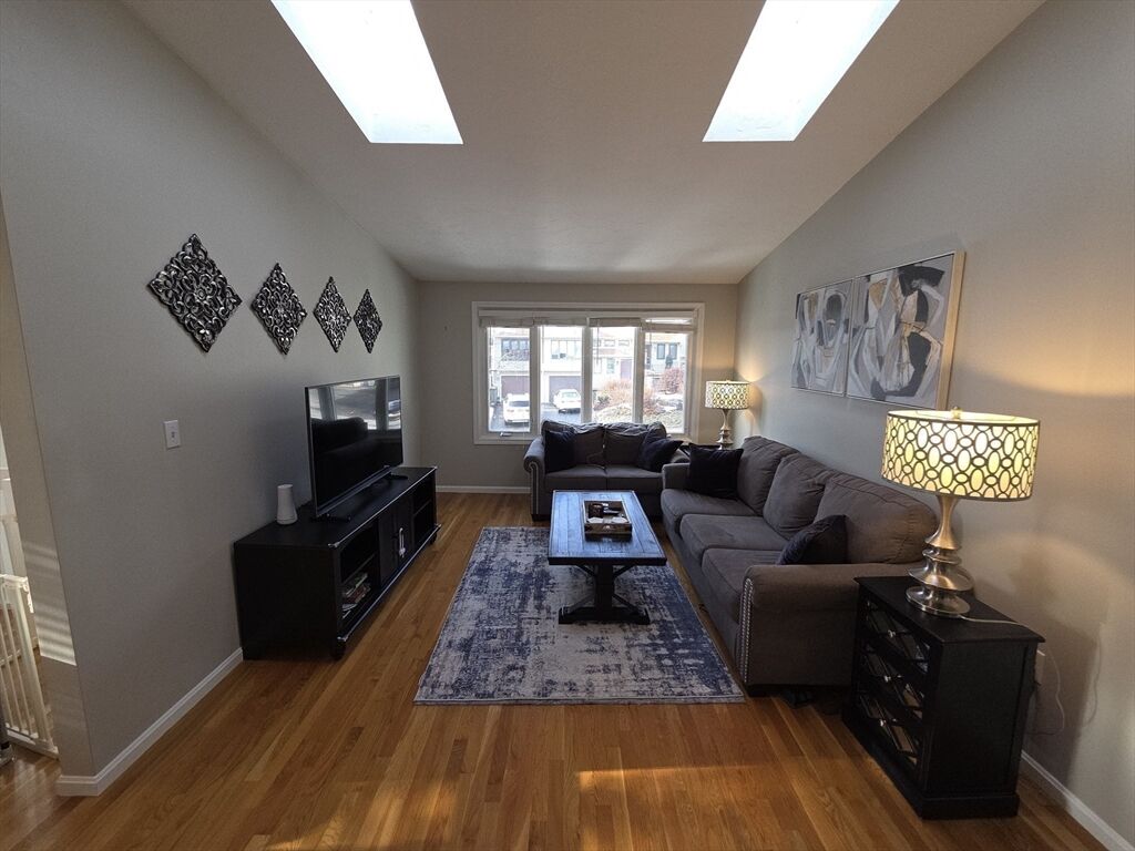 Excellent location for this well cared for end unit in Bruce Hollow II. Adjacent to a common parking lot. Deck overlooking nice back yard area. Current owner replaced the hot water heater, dishwasher, oven/stove, & refrigerator. Current owner also upgraded flooring in the main living area upstairs and both upstairs bedrooms. Entry foyer with slate flooring and coat closet. Main floor has a living room w/vaulted ceiling, fireplace, two skylights. Formal dining w/pass-thru to kitchen. Master bedroom w/vaulted ceiling and entry to main bath. Second bedroom with sliding glass door to deck (composite decking, vinyl rails and balusters). Finished basement with full bath (shower stall), family room and third bedroom. Garage under. This is a very well-run complex. Close to Grafton's historic town center. Minutes to Pike, Train, 495. Grocery store w/in 2 miles