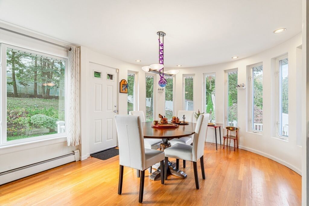 Tucked away on a Pigeon Hill cul-de-sac in North Waltham, this well maintained home offersthe perfect blend of comfort, functionality, and elegance. Through the foyer is an expansiveliving room with beamed cathedral ceilings, fireplace, and oversized windows. Adjacent, find adining room and kitchen that boasts quartz countertops and a sunny breakfast nook. On thesecond floor are two bedrooms and bath, as well as a primary bedroom with ensuite. A dedicatedlaundry room adds convenience and functionality. Off the foyer, is a bonus room with fireplaceas well as an office, bath, and large family room. A semi-finished lower level comes ready with abuilt-in bar. The professionally landscaped, two-level fenced yard features a generous Trex deckand 32-foot pool. Additional highlights include a two-car garage, workshop, and ample utilityand storage. This is a rare opportunity to own a special home in one of Waltham’s most desirableneighborhoods.