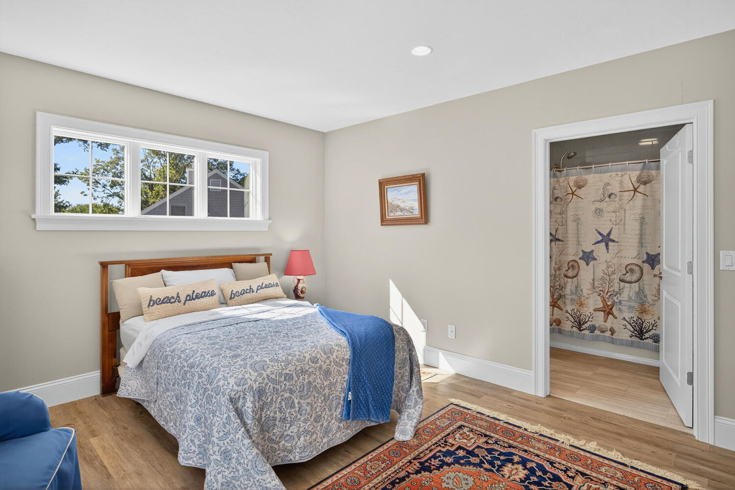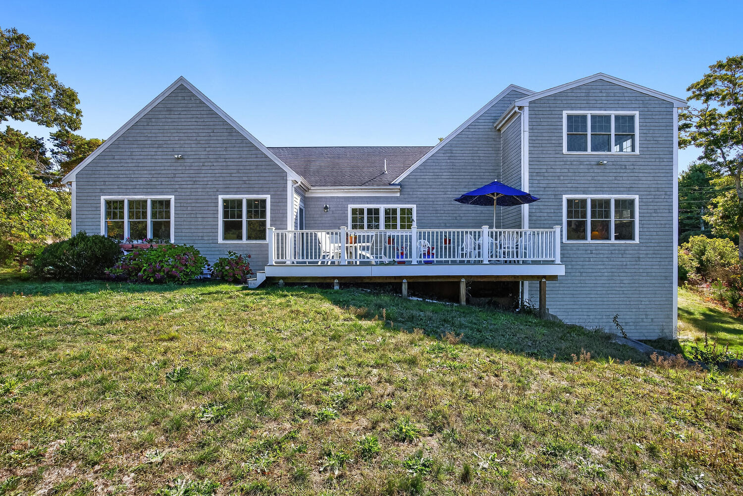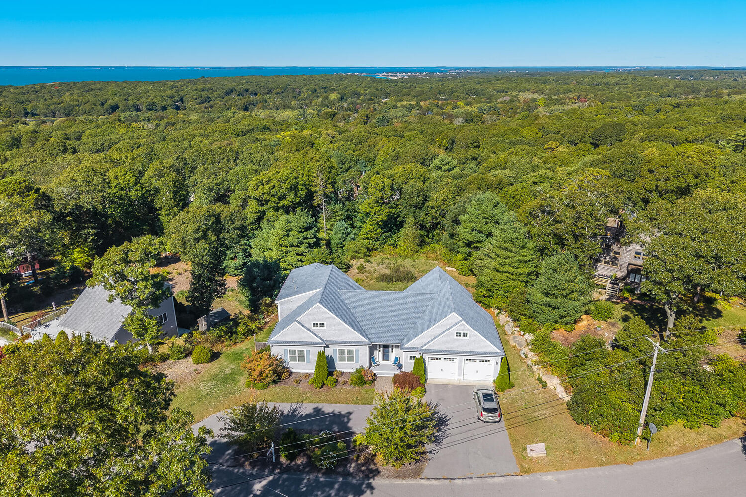 Enter into a home designed for comfort, connection and ease of living. This stunning 2,714sq.ft.single -family retreat with soaring ceilings and walls of windows that flood every room with natural light. The open, thoughtful floor plan features two spacious ensuite bedrooms on the main level, creating the perfect blend of privacy and convenience , while the upstairs third bedroom with a full bath offers flexibility for guests, family, or a quiet retreat.Built with every detail in mind, this home makes daily living effortless. Wide doorways, no thresholds, and a seamless flow ensure comfort for all and the ability to age gracefully in place. And when life brings the unexpected, a whole-home generator keeps everything running without interruption-providing peace of mind through every season.A large two-car garage and generous storage add everyday convenience. And as you come and go, the driveway rises to a high point that offers a glimpse of the ocean-reminding you that home here is more than walls and windows, it's a lifestyle.Convenient to Shining Sea Bikeway, Moraine Tract, Snug Harbor, Chapoquoit Yacht Club and beach, Pulpit Rock, and Little Island Beach Preserve .