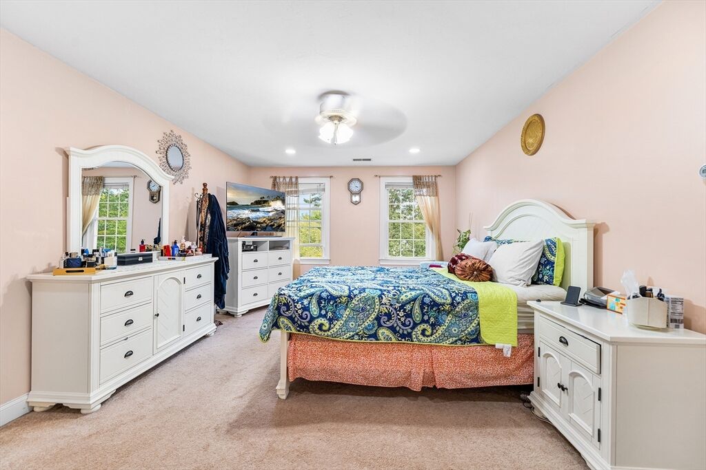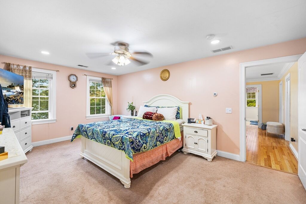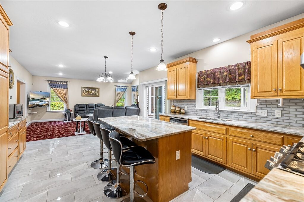 Move-in ready and beautifully designed, this 4-bedroom, 2.5-bath Colonial offers spacious living on a scenic, tree-lined acre+ lot in Charlton. Located in a very quiet neighborhood with incredibly quick access to Route 20, the home features 9-ft ceilings and a two-story foyer, hardwood floors in the living and dining rooms, and tile in the kitchen and baths. The kitchen was renovated in 2021 with new granite countertops, a stylish backsplash, and updated tile in 2023. A rare gas stove complements the custom cabinetry. Upstairs, the 2nd-floor bedrooms and hallway floors were redone in 2021, and both full baths were upgraded with granite counters. The oversized deck overlooks the private backyard. Enjoy HydroAir heating with central air, a 3-car garage, detailed trim, and a spacious main suite with soaking tub, double vanity, and 4-ft shower—blending comfort, quality, and convenience.