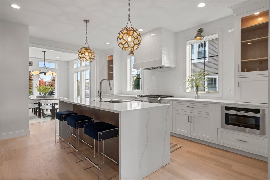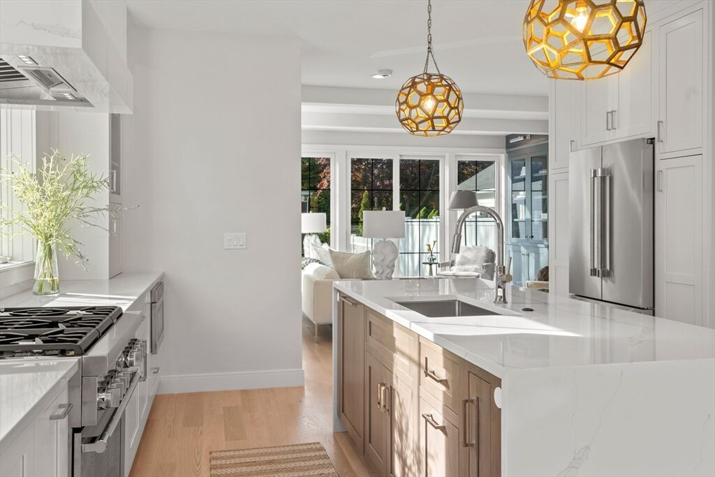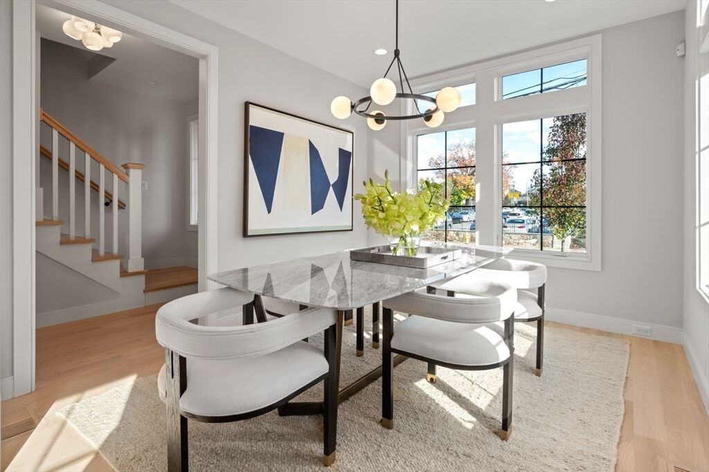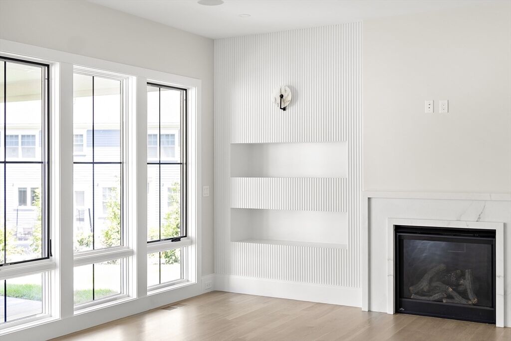 Exceptional townhouse in the heart of town by Catalyst Development, showcasing elevated design, refined craftsmanship, and custom finishes throughout. This 5-bed, 4.5-bath home features a sunlit open layout with a designer kitchen, expansive family room with floor-to-ceiling windows and glass doors, and fireplace. The luxe primary suite offers soaring ceilings, walk-in closet, and spa-like bath. Two additional bedrooms, a full bath, and laundry complete the second floor. The versatile third floor includes a bedroom, full bath, and open flex space, ideal for an office or guest retreat. The finished lower level features a bedroom, full bath, and den or fitness room. Enjoy a private, fenced-in yard with patio and lush landscaping. Attached 1-car garage. Unmatched proximity to the commuter rail, top schools, shops, and restaurants. Only 1 unit left - don’t miss this rare opportunity!