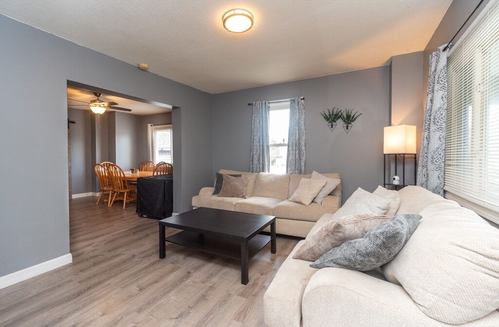 OPEN HOUSE SUN 11/2 10AM -1PM!! PRICE IMPROVEMENT!! Lovely single-family home that has been well maintained and updated! Enter the front door to a wonderful open floor plan where a spacious living room flows into a generous sized dining room and stylish kitchen for all your entertaining! A full bath and bonus room round out the first floor space. Head upstairs to three bedrooms which provide ample space for rest and rejuvenation. The thoughtful layout maximizes living area, offering a comfortable and inviting atmosphere. The property includes a single-car garage, providing sheltered parking and two sheds for additional storage. Plenty of outdoor space that invites you to cultivate a garden, create an outdoor entertainment area, or simply enjoy the tranquility of your own fenced yard. This colonial, with its classic charm and practical features, invites you to create a home filled with lasting memories. Ring doorbell on premises that records audio/visual will stay for next owner