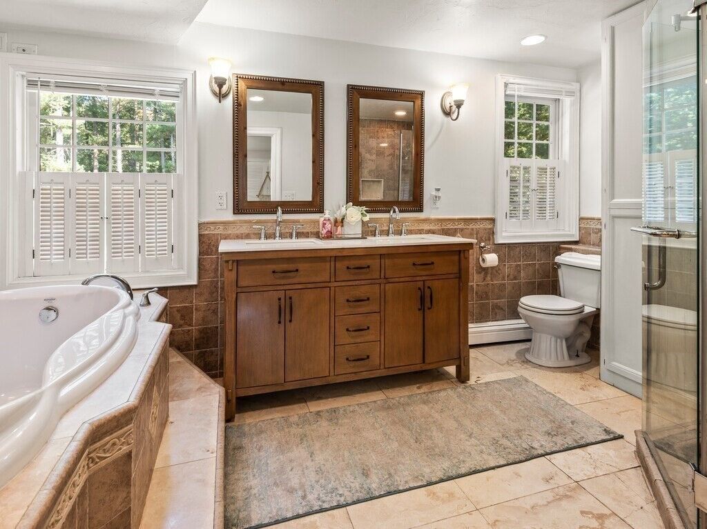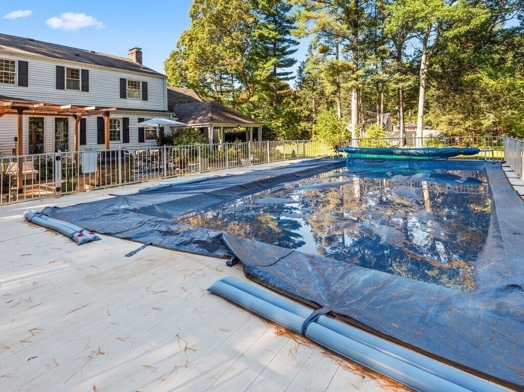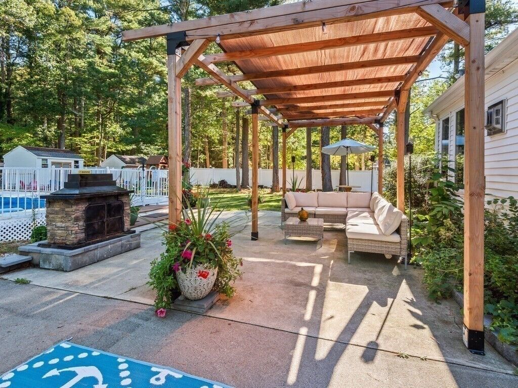 Welcome to this exceptionally charming Raynham home! This spacious 5-bedroom, 4.5-bathroom home is thoughtfully designed for multi-generational living and offers comfort, style, and flexibility at every turn. The first floor showcases an elegant open-concept layout—perfect for entertaining—with refined finishes and a natural flow. Upstairs, you’ll find three bedrooms, including a luxurious primary suite featuring three closets and a whirlpool tub, plus a second full bathroom and two additional bedrooms. Just down the hall and above the two-car garage, a private guest suite with a full bath provides the ideal space for teens, visitors or extended family. The finished basement adds even more versatility, offering a 5th bedroom, full bath, kitchenette, wet bar, and bonus living area—perfect for in-laws, guests, or an entertainment zone. Step out to your backyard oasis, complete with multiple lounging areas, covered patios, pergolas, a beautiful above-ground pool, garden & shed.