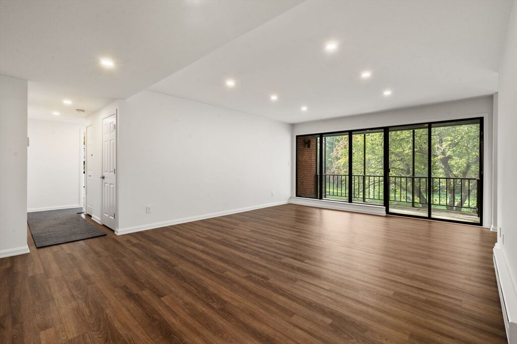 Complete transformation! Incredible renovation to this corner unit! Light and bright kitchen with new white kitchen with quartz counters and stainless appliances. Casual dining space is part of the extended kitchen area. Large living room that opens to balcony with beautiful views. Dining room area with full wall of built-ins. Mudroom and entry area is also full of great closet space. Main bedroom with new bathroom and large walk-in closet. Guest room/den plus a 2nd new bathroom. Move right into this one floor living incredible unit. New flooring and paint. Extra bonus with 2 indoor garage parking spaces. Carefree lifestyle with heated pool, access to the amazing Brook Path and all the conveniences of Wellesley Center- shops, restaurants and train.