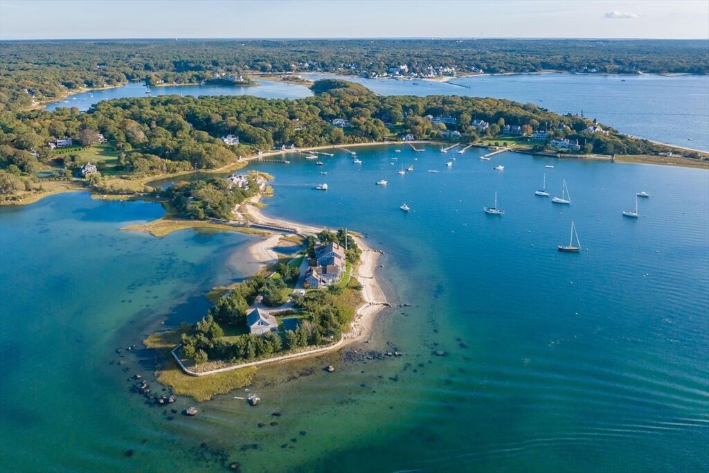 Rocky Island offers old Cape charm with a modern stylish interpretation, fully renovated in 2014 with up-to-date systems, and winterized for off season enjoyment. Connected to the mainland by a wooden bridge, it provides the privacy and safety of a true island and the ease and accessibility of a mainland property. Sandy beachfront, seasonal deepwater dock, pool, and a pool house/garage. Wrap around covered porch for panoramic water views and sunsets. Seven bedrooms each with water views, seven full and one half baths, and three fireplaces. Potential for three additional bedrooms. Plenty of space inside and out on your own private island.