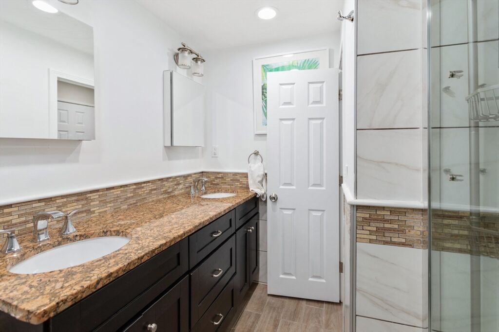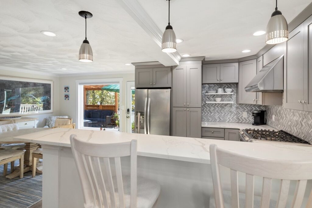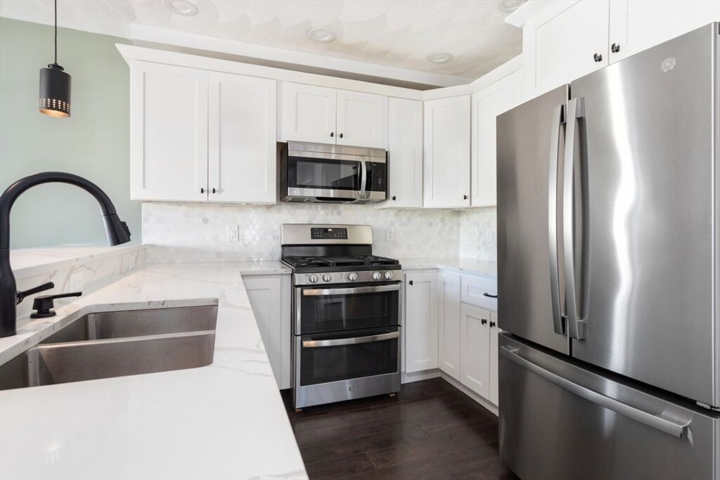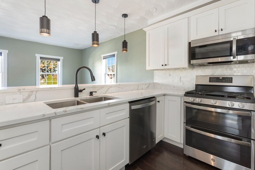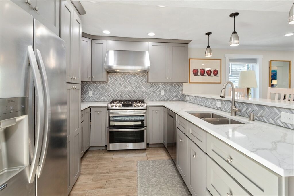 Welcome to this impressive 2 family home that lives like 2 singles. Each unit has its own entrance, a spacious open floor plan, in unit laundry and separate utilities with the exception of the water service. Each unit has 2 full updated baths. Both stunning kitchens feature quartz counters, tile back splash and trendy cabinetry. The stoves offer gas cooking and double ovens, just in time for Thanksgiving! The first floor accesses a fabulous covered composite deck. Other noteable features are a welcoming front porch, 2 tankless instant hot Navien hot water systems, a new roof and siding in the last 3 years and a brand new 2 car garage. The generous landscaped yard is fully fenced in. The exterior decking, most of the railings and all of the fencing are vinyl wrapped, requiring minimal maintenance. Central A/C, lots of parking and get this: a convenient dog run complete this great property. Perfect for extended family, as an investment, or a future condo conversion. Offers due 10/21 @2PM