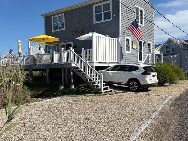 Welcome to Seaview village of Marshfield! This elevated 2BR,2Bath home is located on a gorgeous tidal marsh! Literally steps to restaurants, shops, the south river, public boat launch & a short walk over the Sea St or Julian St bridges to Humarock Beach. Expansive L-shaped deck extends your living space, so be prepared to get lost for hours enjoying the quiet beauty of this very alive marsh by day & counting shooting stars by night! The open floor plan designed is great for entertaining! Kitchen w/ S.S. appliances is open, welcoming & encompasses a cozy Den/sitting area. Dining rm nook is open to the kitchen & leads out to the deck. Beautiful views & sunrises from the huge 2nd level livingrm with cathedral ceiling & ceiling fan, Big master bedroom has plenty closet space & pull down attic for extra storage. Convenient 1st floor bedroom has an impressive floor to ceiling barn door.(currently being used as an office/flex room) Light and bright easy care laminate floors throughout.