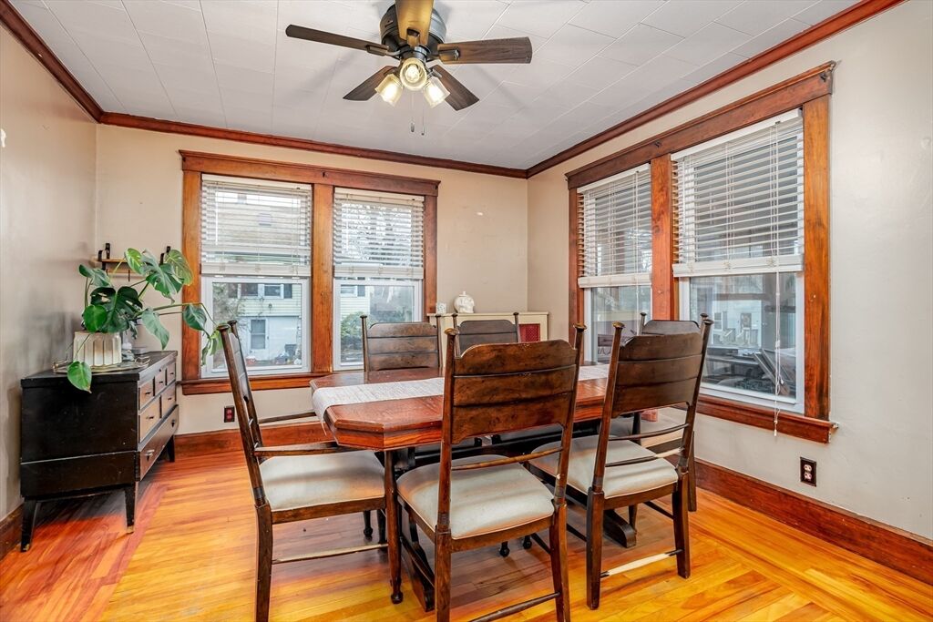 Welcome to this charming 4-bedroom bungalow on Lovewell Street in South Gardner. The first floor offers a bright enclosed three-season porch, a welcoming living room with classic hardwood floors, a spacious dining area, and a kitchen with ample cabinet storage and exterior access. Two bedrooms and a full bath complete the main level, with two additional bedrooms upstairs providing flexible living options. Outside, enjoy a paved driveway, under-garage storage, and a generous backyard ideal for relaxing or entertaining. Conveniently located near parks, schools, shopping, and major routes, this home blends timeless character with everyday practicality.