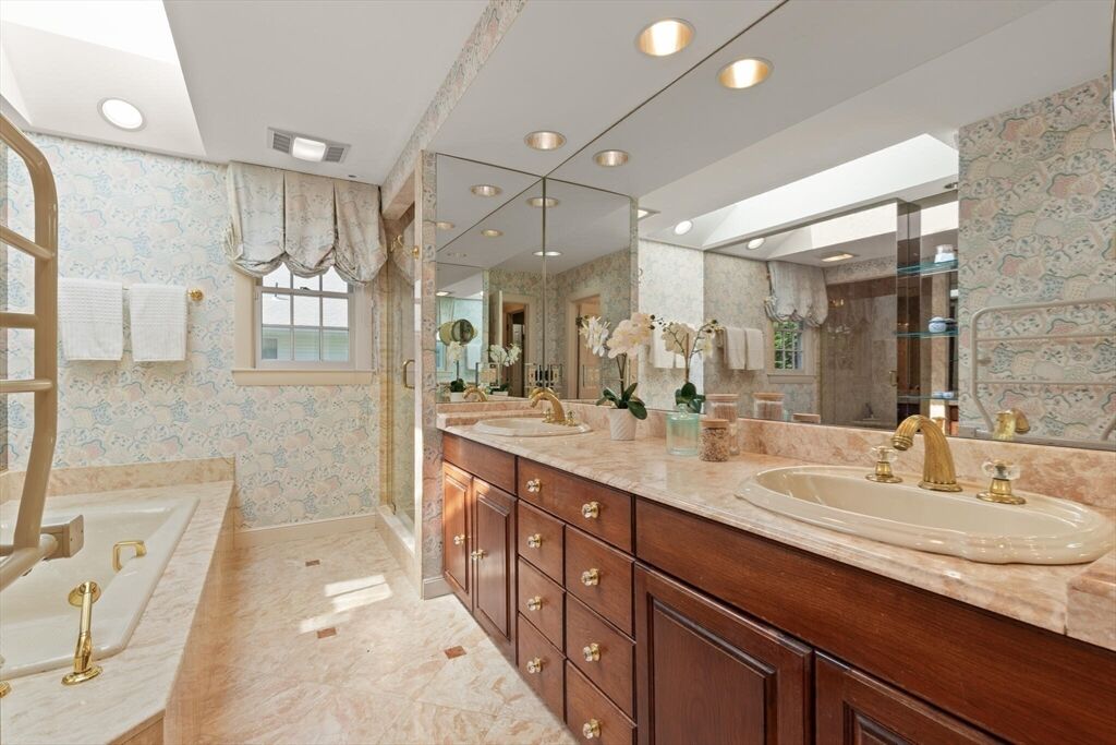Step into timeless potential in this architecturally striking home, set on exquisitely landscaped grounds, in Belmont Hill, that feel like a private resort. From the marble foyer to the elegant step down living room with a marble fireplace, every detail offers the chance to craft something extraordinary. A custom built formal dining room, created for hosting on a grand scale, complements the flowing floor plan. The kitchen, informal dining, and family room overlook the lush rear yard and gunite pool, making entertaining seamless. The generous primary suite boasts a walk-in and additional closets, spa like bath with skylights, and serene garden views. Two more bedrooms with en suite baths, a stately office with fireplace, and a versatile upstairs loft with a balcony add to the appeal. The retro lower level adds personality or potential. The tropical feeling backyard is lush, private, and alive with birdsong. This is more than a home. It's a canvas waiting for your masterpiece.