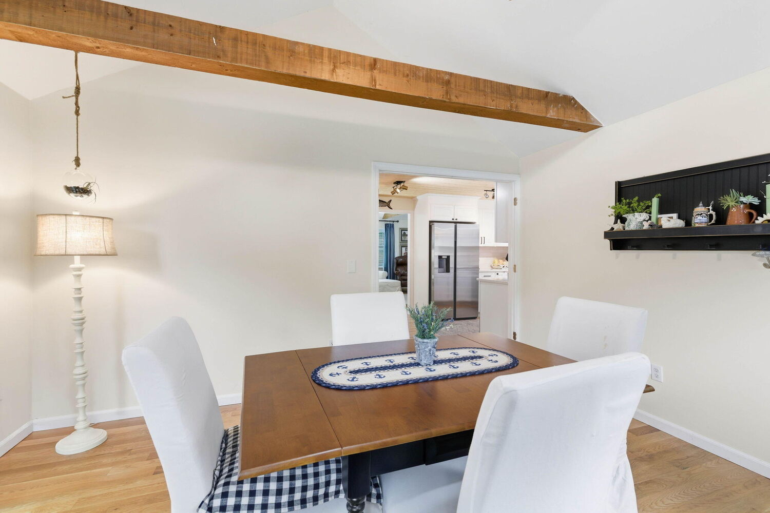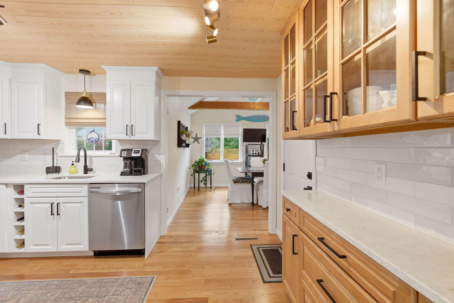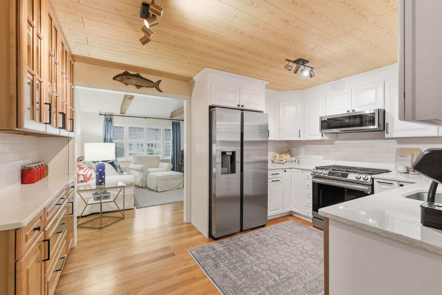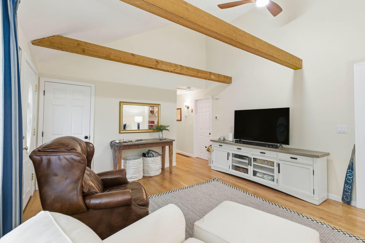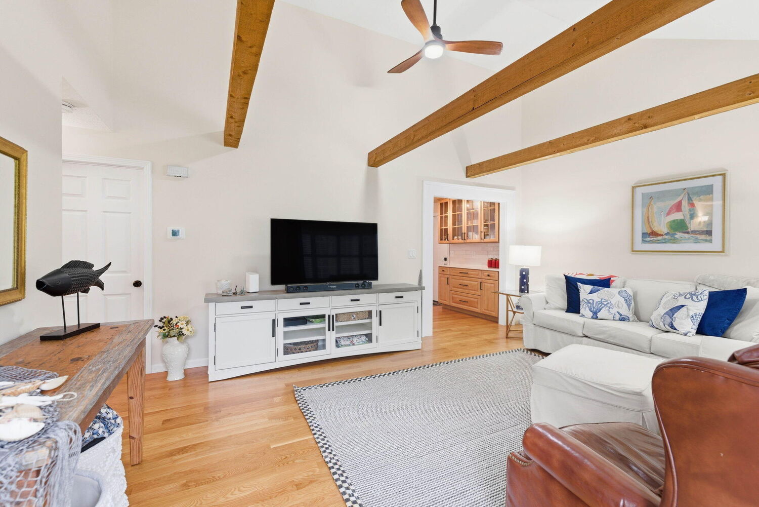 HGTV-Worthy Cape Ranch with Modern EleganceStep into this beautifully updated Cape Ranch that blends classic charm with contemporary flair. Renovated between 2022-2023, this home boasts:YY Interior Upgrades:Gleaming hardwood floorsFull kitchen remodel with quartz countertops, custom cabinetry, and premium appliancesRenovated bathrooms with stylish finishesPlantation shutters, Roman shades, and updated light fixtures/fansVaulted ceilings with exposed beams for an airy, open feelai Systems & Comfort:Whole-house HVAC heat pump with A/CNew hot water tankFreshly painted inside and outYs Exterior Enhancements:New garage door with openerComposite decking, walkways, and fencingRaised garden beds for your green thumbYi Layout & Location:Spacious primary bedroom with private full bathAnother generously sized bedroomTown sewer connectionCentrally locatedajust minutes to beaches, shops, and restaurants, yet peacefully tucked awayThis home is beaming with natural light and offers a spacious, welcoming layout perfect for entertaining or relaxing. A rare opportunity you won't want to miss!