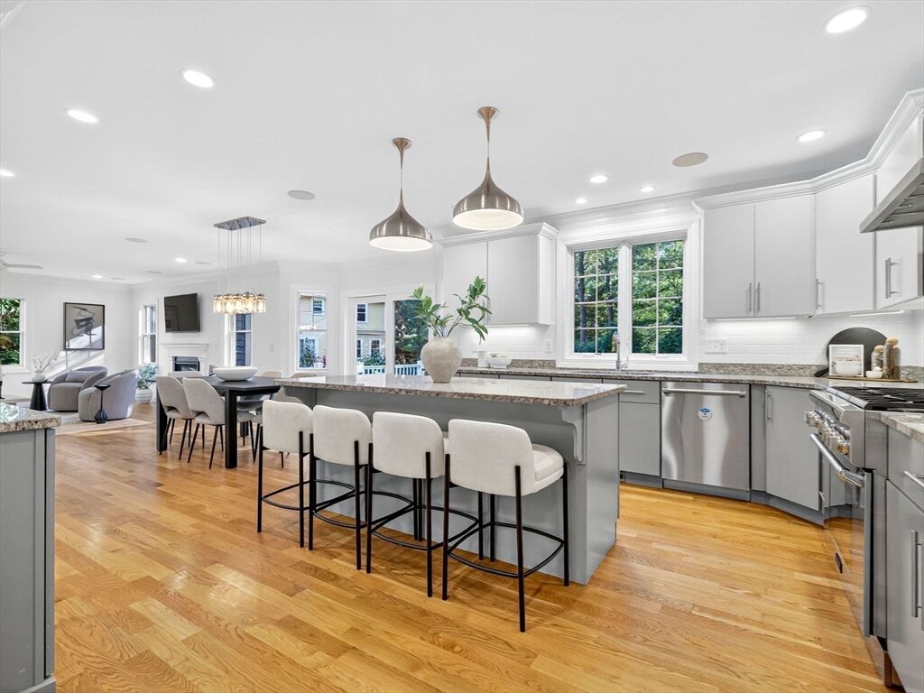 Tucked along one of Jamaica Plain’s most picturesque streets, this 2015 Colonial blends refined craftsmanship with everyday comfort. Sunlight fills the home, accentuating thoughtful details and generous proportions throughout. The kitchen serves as the heart of the home—featuring Thermador appliances, an oversized island, and a seamless connection to the deck beneath a canopy of mature trees—creating the perfect backdrop for effortless entertaining or quiet mornings with coffee. Upstairs, each bedroom includes a walk-in closet, while the serene primary suite offers a spa-like bath and spacious dressing area. A walk-up attic plumbed for a bath and a finished lower level that walks out to your private fenced-in yard provide endless possibilities for recreation, work, or creativity. With a two-car garage, three-zone AC, irrigation, home office, and easy access to Franklin Park and the Green Street T, this home offers a rare balance of elegance, flexibility, and connection to nature.