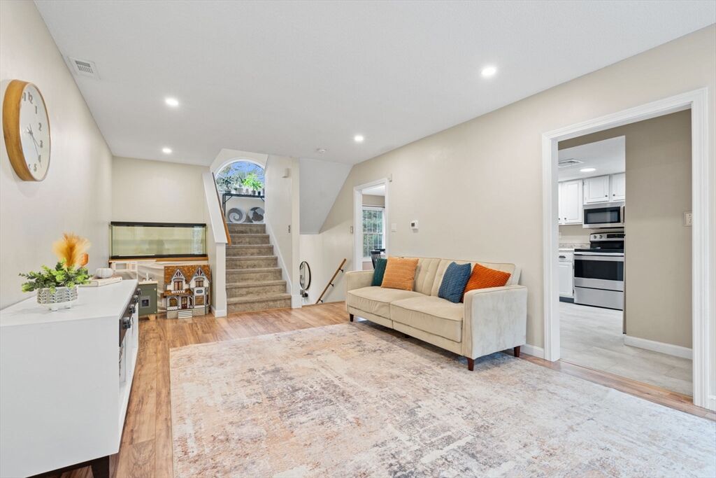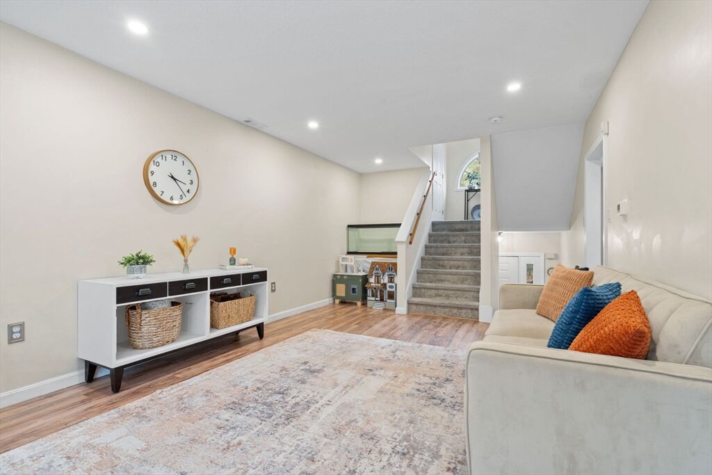 Sunny and updated 3BR, 2.5BA townhome nestled at the end of a desirable Sutton cul-de-sac! This lovingly maintained home offers a welcoming entry w/ mudroom closet and a versatile partially finished lower level, perfect for a gym, playroom, or home office; plumbed for 1/2 bath. The main level includes a formal dining room with breakfast bar open to the kitchen, a spacious living room with slider to the deck and a perfect nook for a desk, or toys, plus a half bath with laundry. Upstairs, a half-moon window and skylights fill the space with natural light. The primary suite features a walk-in closet and private bath, while two additional bedrooms share a full hall bath. Added bonuses include a 1-car garage, guest parking, and plenty of storage. Energy-efficient improvements done with MassSave (2022); H2O tank (2020), Central Air and heating system (2018), more updates listed on attachment. Move right in and enjoy this beautiful home close to major routes, shopping, and schools!