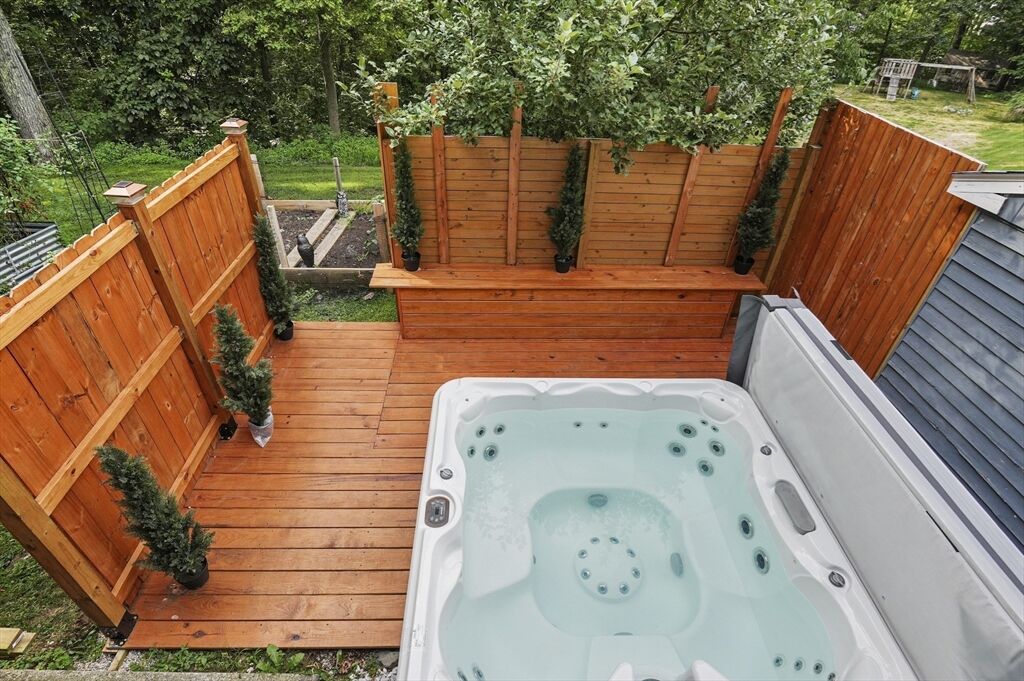 | Exterior Features | Deck Deck - Wood Balcony Rain Gutters Hot Tub/Spa Storage Professional Landscaping Decorative Lighting Screens Garden |